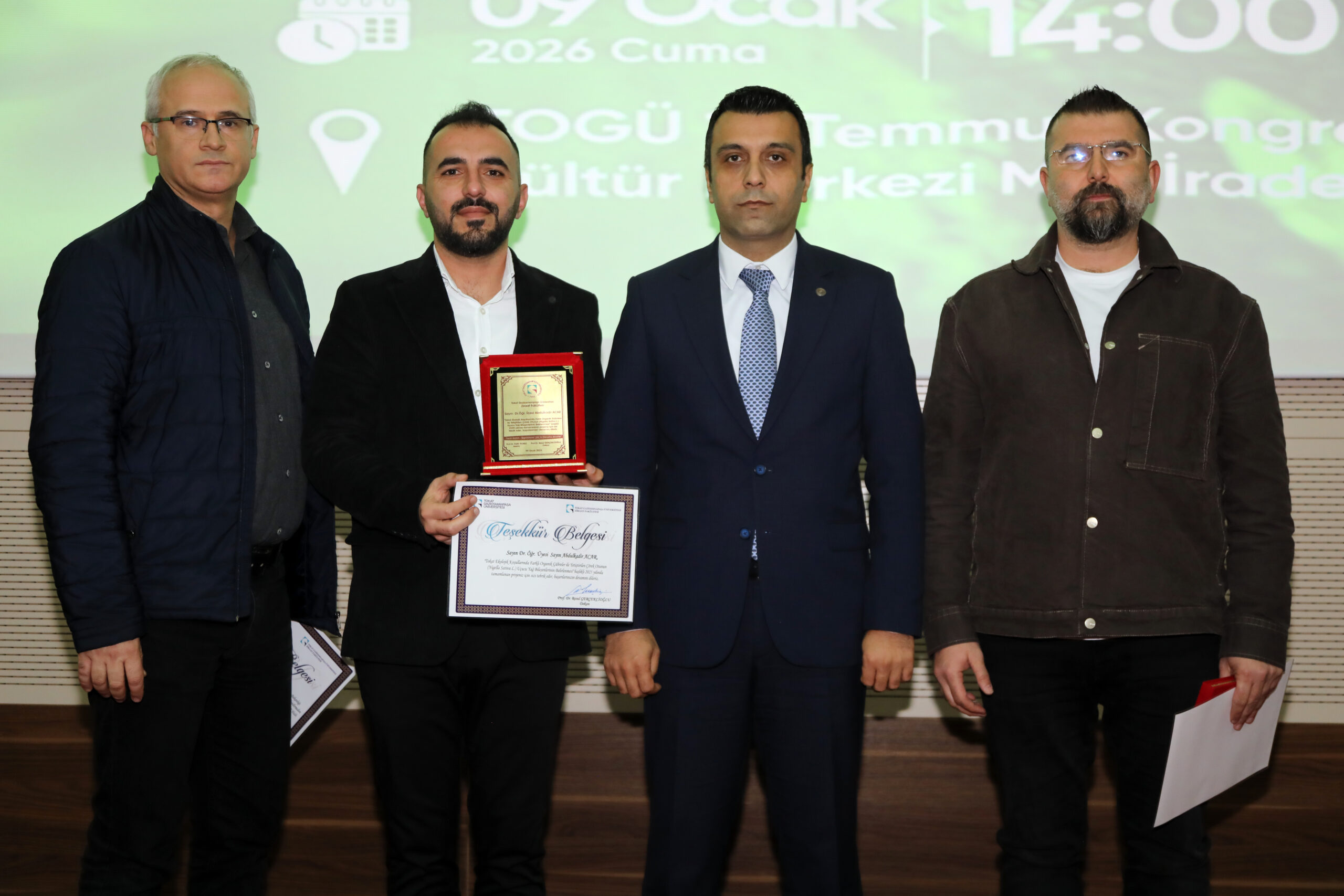 Programın sonunda, üniversitemizde 40 yılını dolduran öğretim üyelerine verdikleri emek ve katkılardan dolayı teşekkür belgesi ve plaket takdim edildi. Ayrıca, TÜBİTAK projeleri kapsamında ödül almaya hak kazanan akademisyenler ile akreditasyon sürecine sağladığı katkılardan dolayı Prof. Dr. Engin Özgöz’e ve altı dönem boyunca not ortalaması yüksek olan öğrencilere teşekkür belgesi ve plaket takdim edildi.