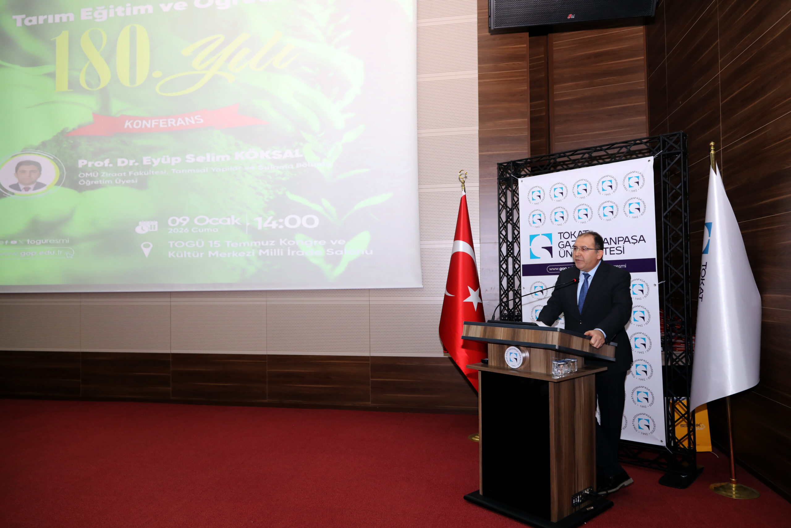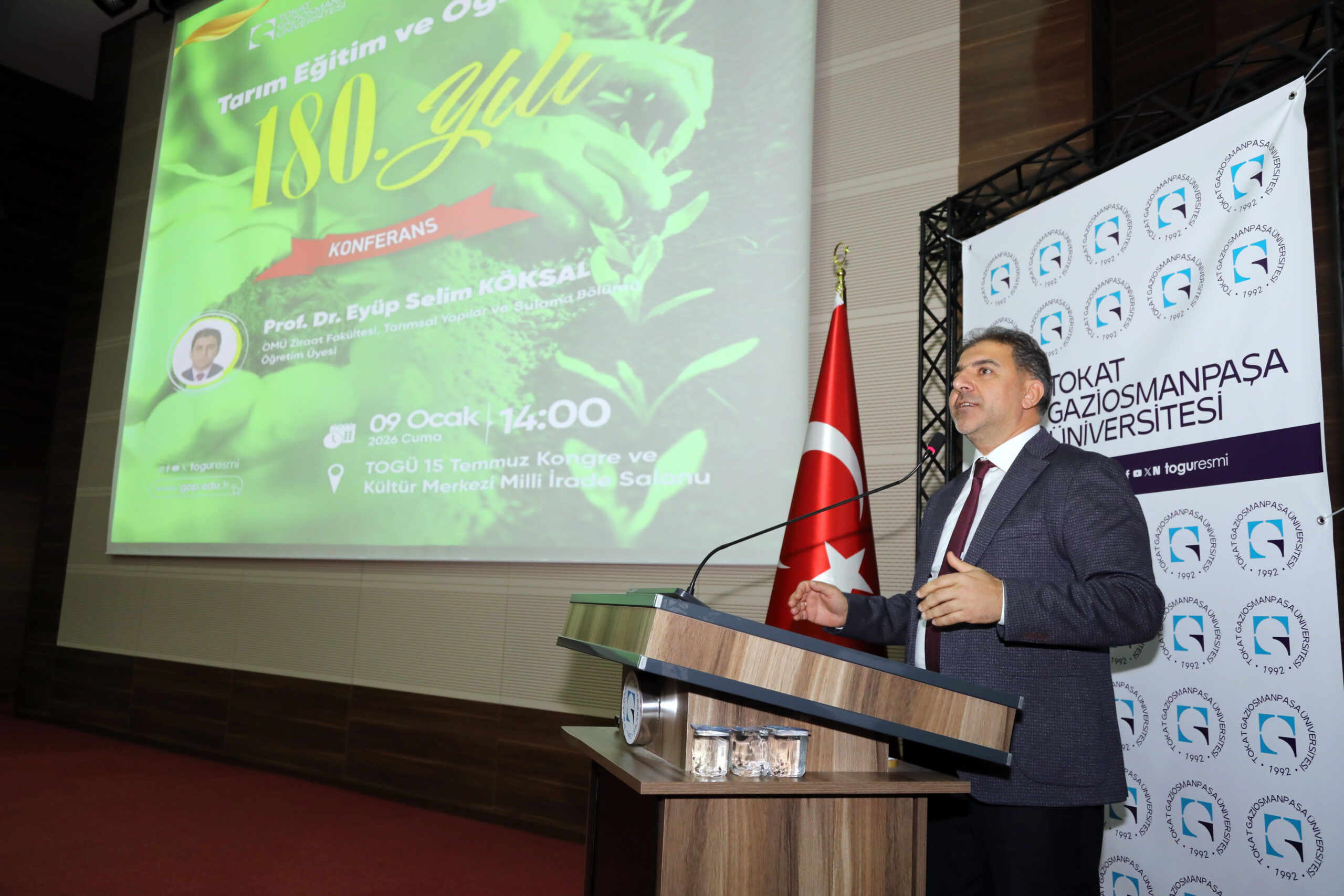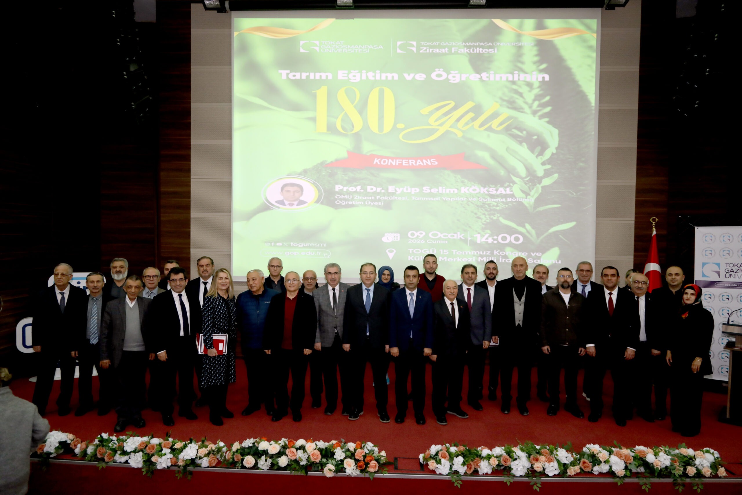 Üniversitemiz Ziraat Fakültesi tarafından “Tarım Eğitim ve Öğretiminin 180. Yılı” konulu konferans düzenlendi. TOGÜ 15 Temmuz Kongre ve Kültür Merkezi Milli İrade Salonu’nda gerçekleştirilen etkinliğe Rektör Yardımcımız Prof. Dr. Rasim Koçyiğit, Ziraat Fakültesi Dekanı Prof. Dr. Resul Gerçekcioğlu, Rektör Danışmanı Prof. Dr. Onur Saraçoğlu, Tokat İl Tarım ve Orman Müdürü Ömer Cebeci, akademik ve idari personelimiz ile öğrenciler katıldı.