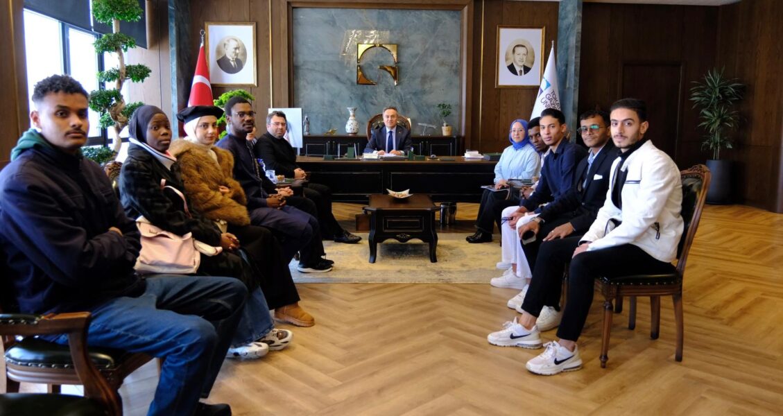 Yurtdışı Türkler ve Akraba Topluluklar Başkanlığı (YTB) bursiyerleri, Rektörümüz Prof. Dr. Fatih Yılmaz’ı makamında ziyaret etti. Ziyarette, TÖMER Müdürü Dr. Öğr. Üyesi Ahmet Akgül ile Dr. Öğr. Üyesi Merve Yılmaz ve Öğr. Gör. Mine Ayan da yer aldı.