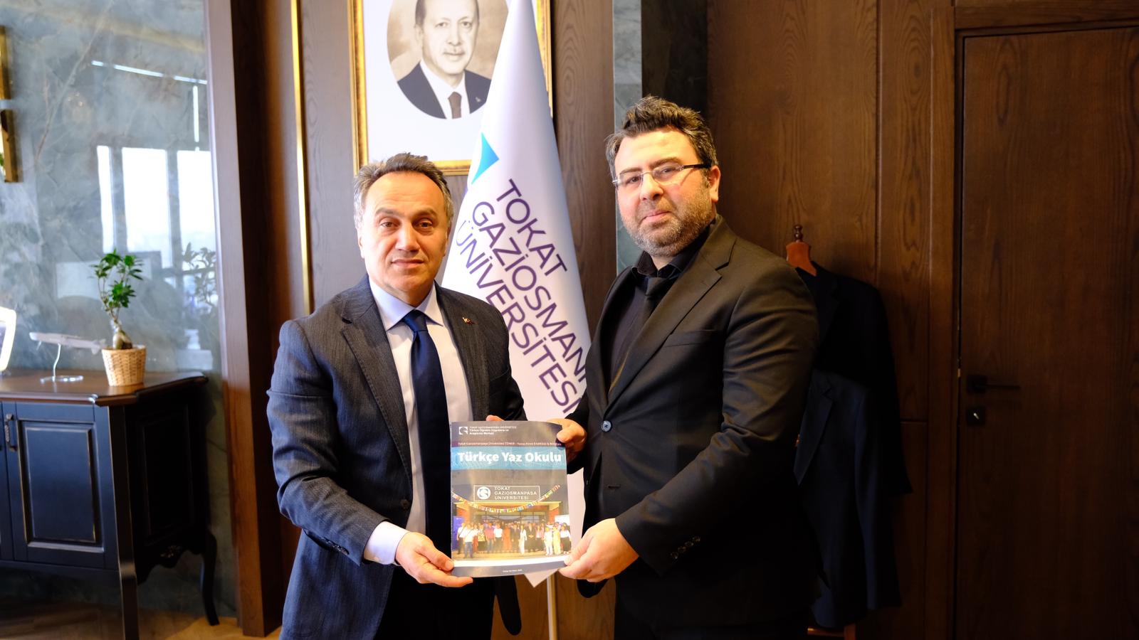 TÖMER Müdürü Dr. Öğr. Üyesi Ahmet Akgül, Üniversitemizde yürütülen yaz okulu programına verdikleri destek dolayısıyla Rektörümüz Prof. Dr. Fatih Yılmaz’a teşekkür ederek, program kapsamında hazırlanan bülteni Rektörümüze takdim etti.