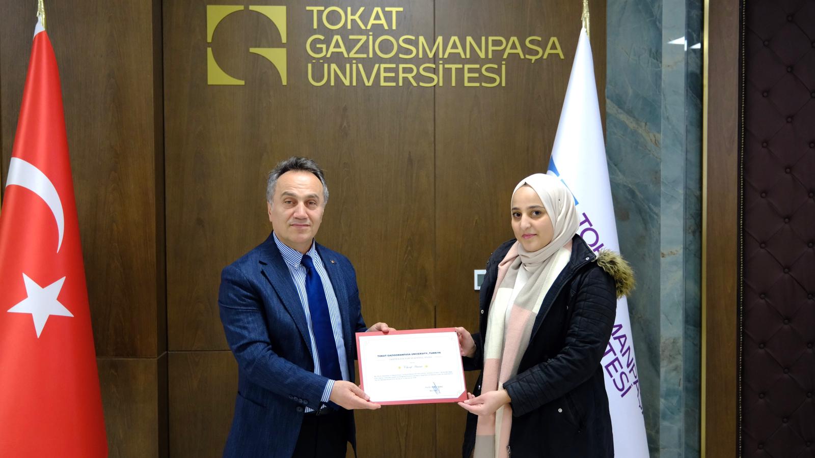 Bu çerçevede üniversitemizde araştırmalarını sürdüren uluslararası araştırmacılar, Rektörümüz Prof. Dr. Fatih Yılmaz’ı makamında ziyaret etti. Ziyarette Ahmed Ben Bella Oran-1 Üniversitesi Doğa ve Yaşam Bilimleri Fakültesi Biyoteknoloji Bölümünden Cherif Amina, Mohamed Khider Biskra Üniversitesi Doğa ve Yaşam Bilimleri Fakültesi Biyoteknoloji Bölümü, Yer ve Evren Bilimleri Anabilim Dalından Chaima Aloui, Guergah Asma ve Touahir Zineb yer aldı.