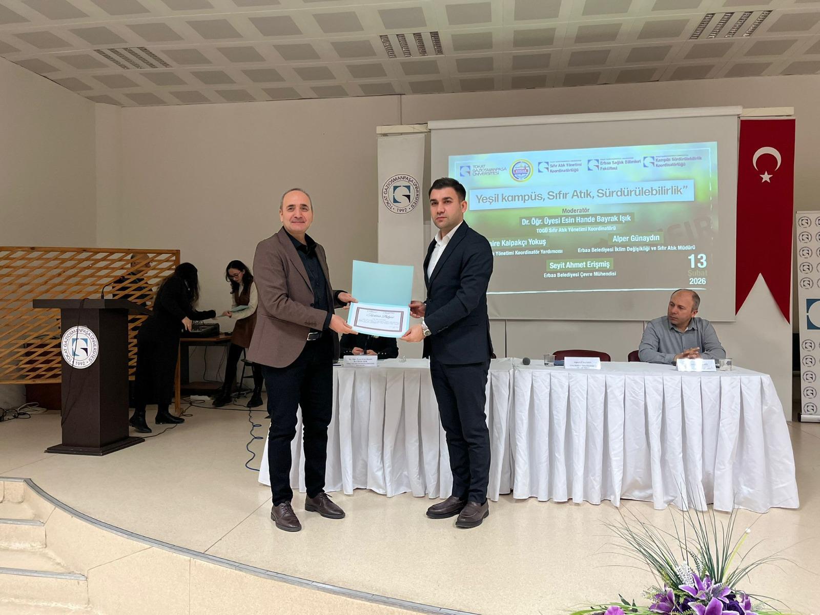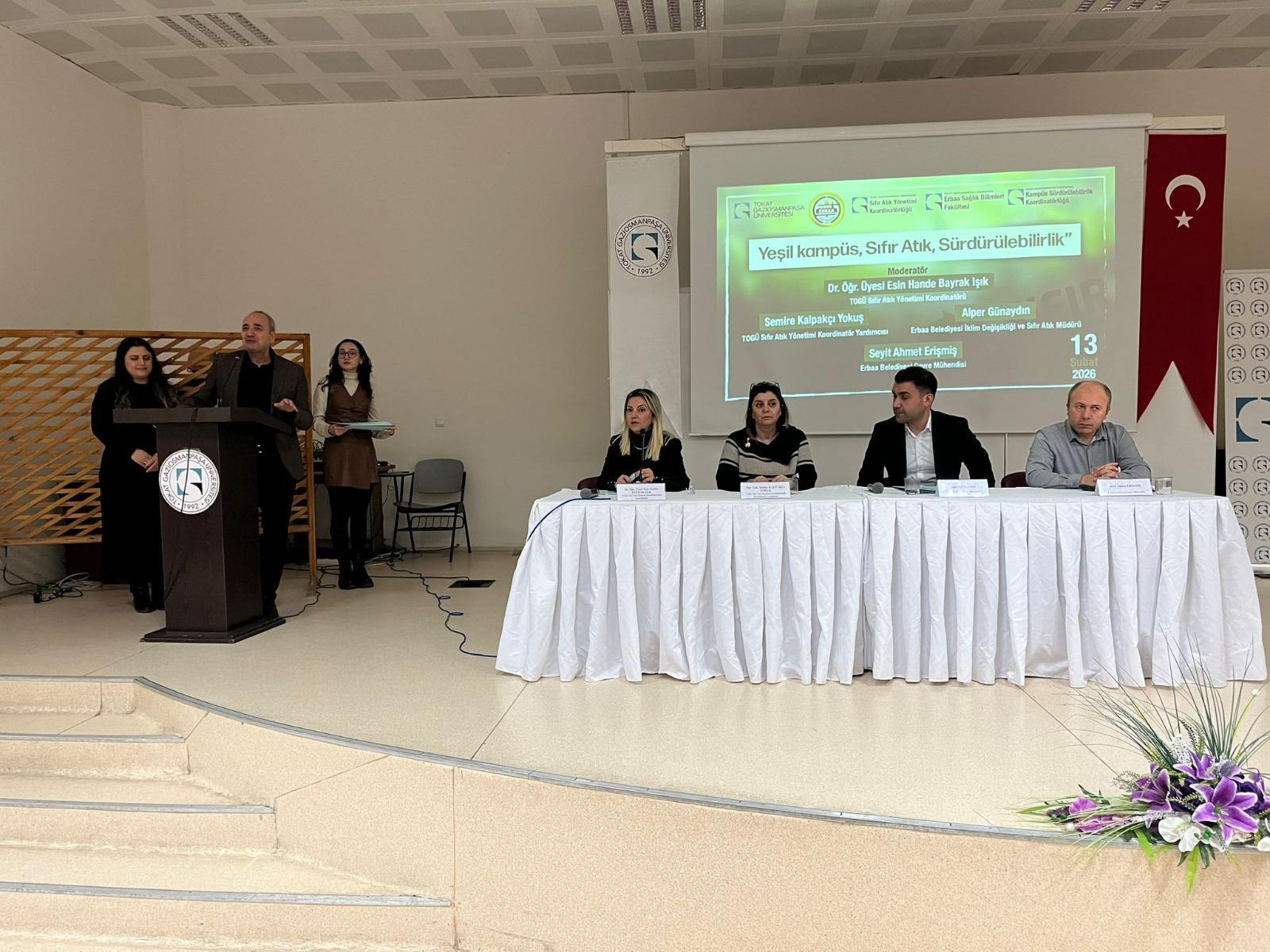 Erbaa Belediyesi, Üniversitemiz Erbaa Sağlık Bilimleri Fakültesi ve Üniversitemiz Sıfır Atık Yönetimi Koordinatörlüğü iş birliğinde “Yeşil Kampüs, Sıfır Atık, Sürdürülebilirlik” temalı panel düzenlendi.