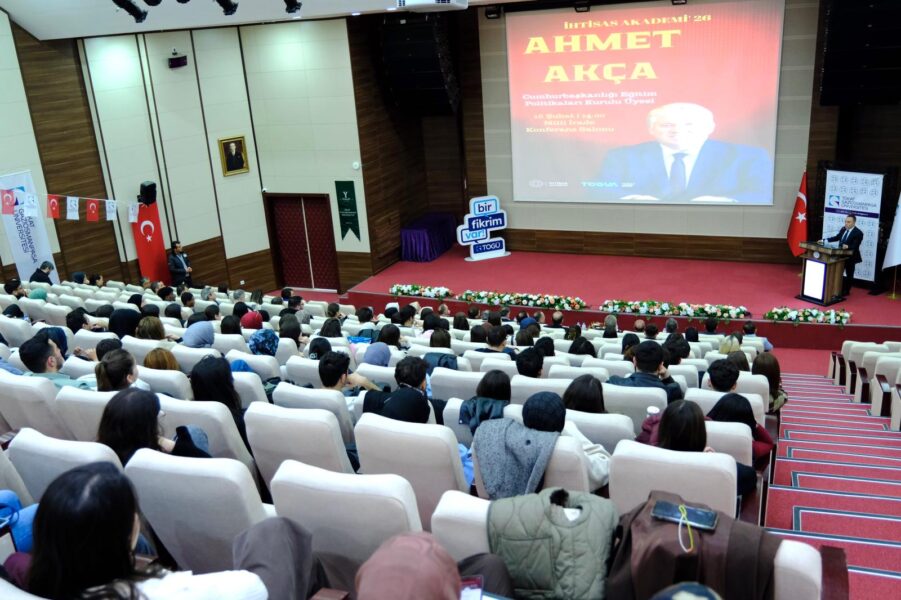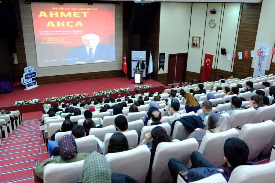 Cumhurbaşkanlığı Eğitim Politikaları Kurulu Üyesi Ahmet Akça, “Değişen Dünya ve Eğitim” başlıklı söyleşide katılımcılarla bir araya geldi. İhtisas Akademi tarafından düzenlenen program, Milli İrade Konferans Salonunda gerçekleştirildi. Programa Rektörümüz Prof. Dr. Fatih Yılmaz, Rektör yardımcısı Prof. Dr. Yusuf Temür, Rektör Danışmanı Prof. Dr. Uğur Akın, akademik ve idari personel ile öğrenciler katıldı.