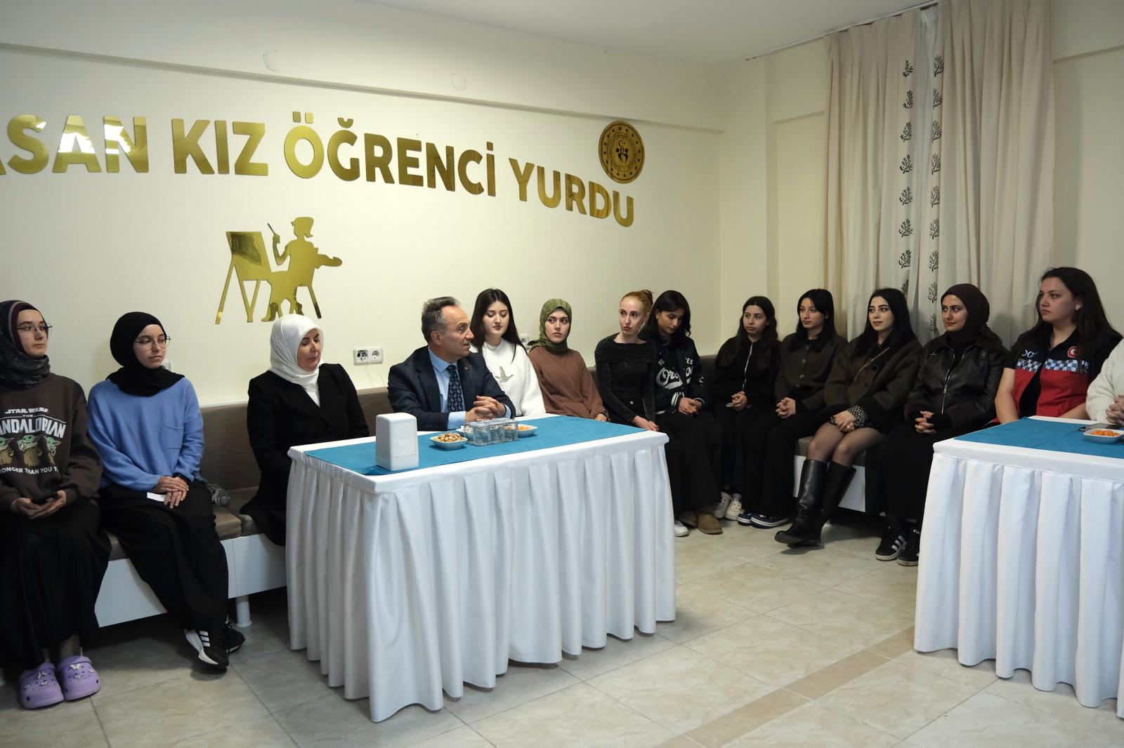 Rektörümüz Prof. Dr. Fatih Yılmaz, Yağıbasan Kız Öğrenci Yurdu’na gerçekleştirdiği ziyarette öğrencilerle bir araya gelerek talep ve önerileri dinledi. Samimi bir atmosferde geçen buluşmada öğrenciler, barınma koşullarından sosyal alanların kullanımına, akademik süreçlerden günlük yaşamı etkileyen hizmetlere kadar pek çok başlıkta görüşlerini paylaştı.