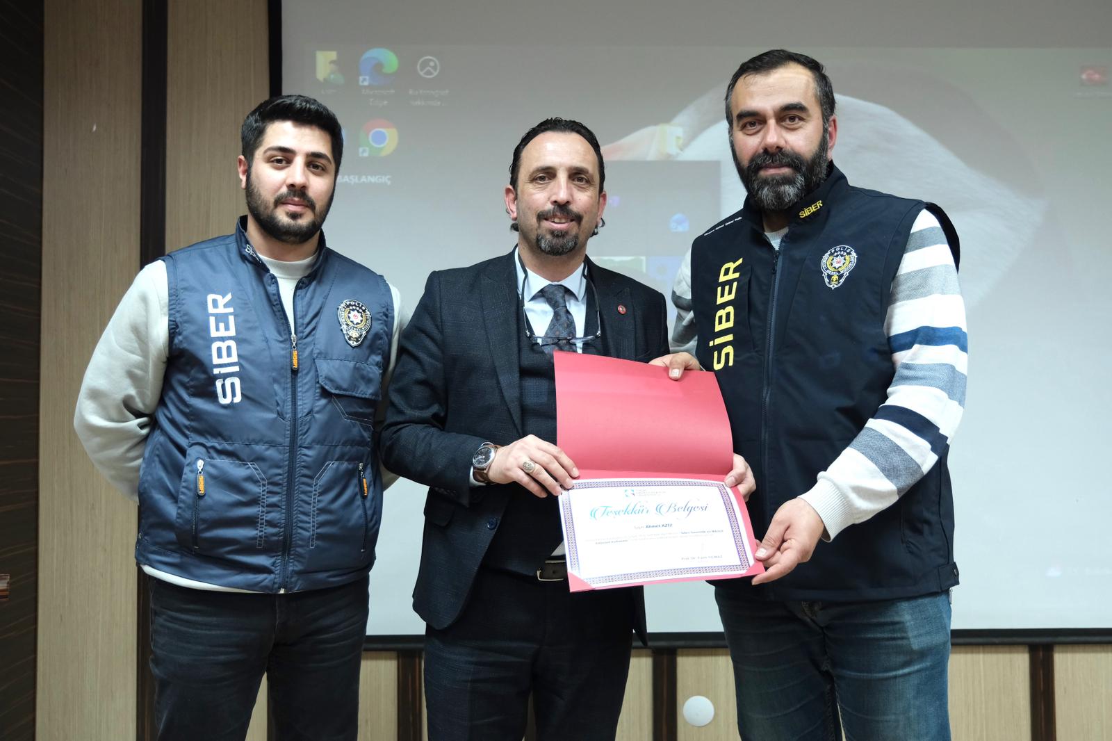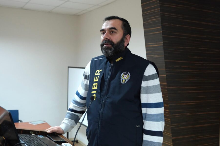 Seminerin konuşmacısı olan Ahmet Aziz (Tokat İl Emniyet Müdürlüğü Siber Suçlarla Mücadele Şube Müdürlüğü), dijital dünyada karşılaşılan güncel tehditlere dikkat çekerek güvenli internet kullanımının temel prensiplerini katılımcılarla paylaştı.