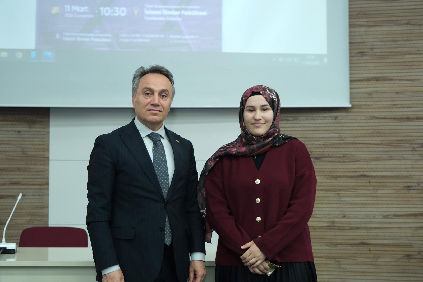 Program kapsamında İslami İlimler Fakültesi bünyesinde yürütülen “Üniversite ile Birlikte Hafızlık Projesi” de kamuoyuna tanıtıldı. Proje Koordinatörü Dr. Öğretim Üyesi Yunus Yalçın yaptığı konuşmada, üniversite akademik eğitimi ile hafızlık eğitimini birlikte yürütmeyi hedefleyen projenin öğrenciler için hem akademik hem de mesleki açıdan önemli katkılar sağlayacağını ifade etti.