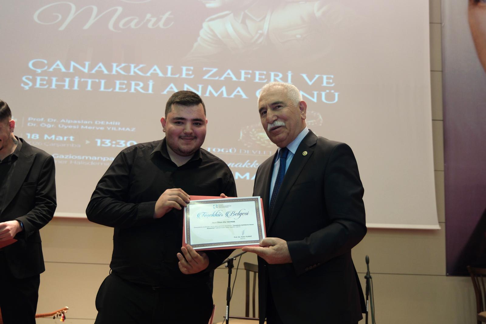 Akademik sunumların ardından Devlet Konservatuvarı tarafından icra edilen “Çanakkale Şehitleri Anma Konseri”, salonda duygu yüklü anlar yaşattı. Müzik dinletisi, izleyiciler tarafından büyük beğeniyle karşılandı ve Çanakkale ruhunun sanatsal bir yansıması olarak hafızalarda yer etti.