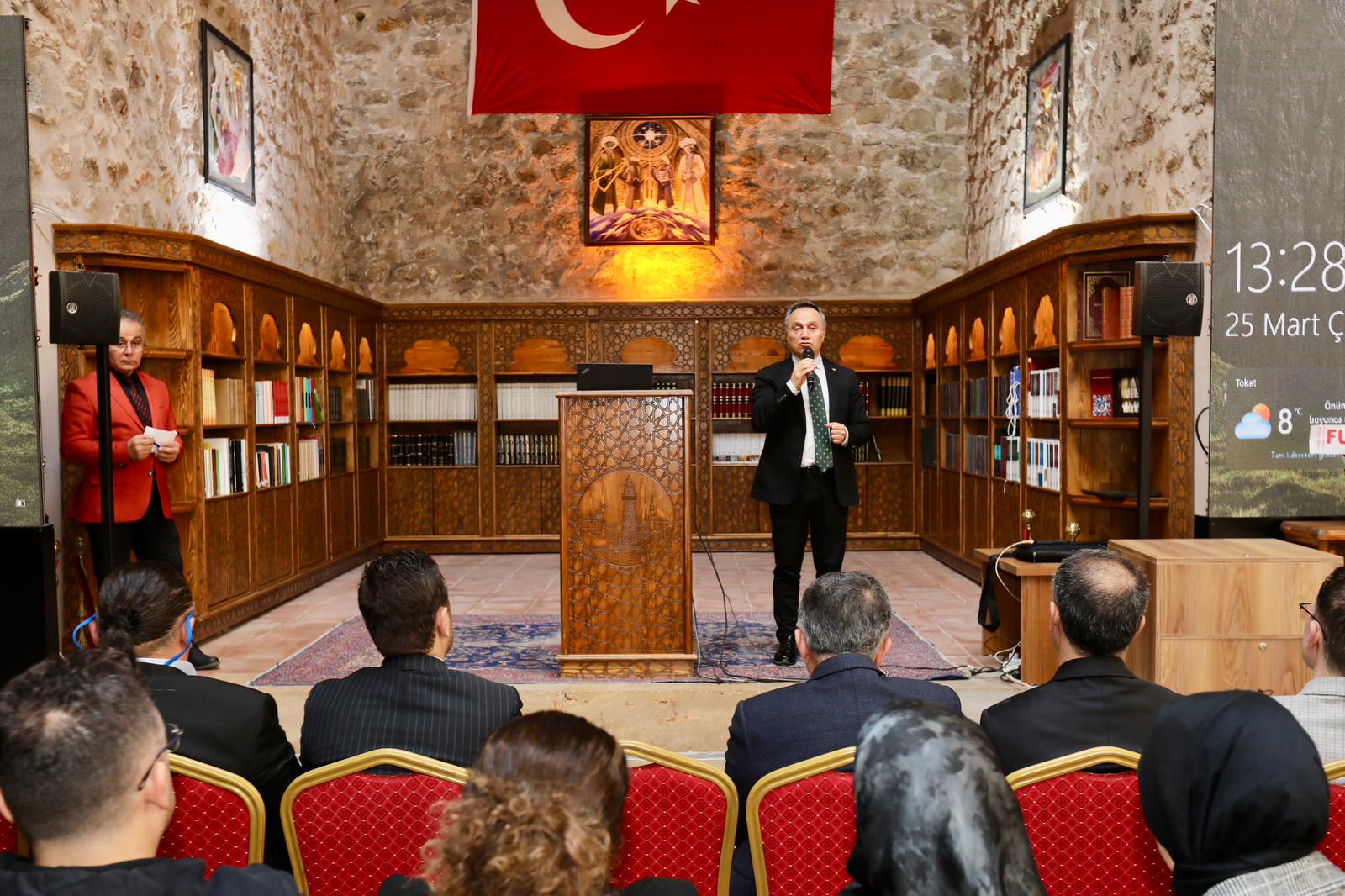 Üniversitemiz tarafından düzenlenen “II. Kadın ve Farkındalık Buluşması” semineri, Tokat Yağıbasan Medresesi’nde yoğun katılımla gerçekleştirildi. Programa Rektörümüz Prof. Dr. Fatih Yılmaz’ın yanı sıra Belediye Başkan Yardımcısı Melik Bingöl, Tıp Fakültesi Dekanı Prof. Dr. Raşit Kılıç, Üniversite Hastanesi Başhekimi Prof. Dr. Eyüp Çağatay Zengin, İl Milli Eğitim Müdürü Hüseyin Kır, Tokat Gazeteciler Cemiyeti Başkanı Musa Özdemir ve çok sayıda vatandaş katıldı.