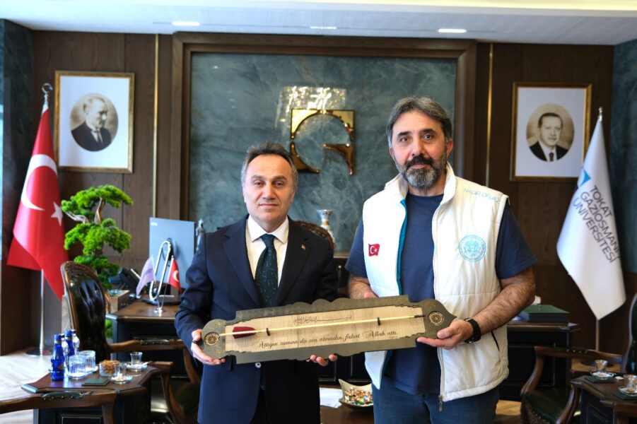 Ziyaret kapsamında Rektörümüz Prof. Dr. Fatih Yılmaz’a bir hediye de takdim edildi. Hediyenin üzerinde “Attığın zaman sen atmadın lakin Allah attı.” (Enfal Suresi, 17. Ayet) ifadesi yer alıyor.