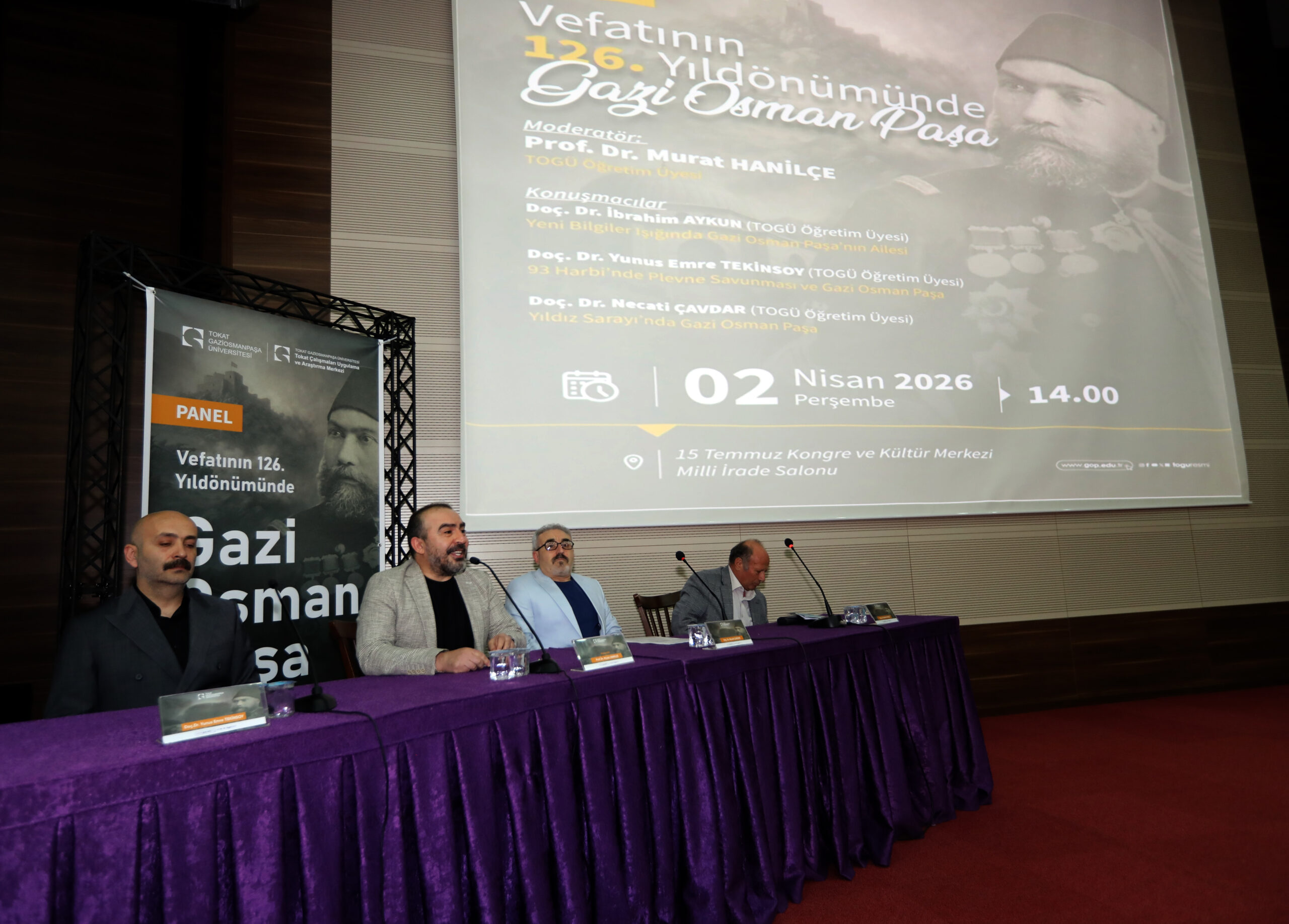 Vefatının 126. yıldönümünde Plevne Kahramanı Gazi Osman Paşa panelinin moderatörlüğünü, Prof. Dr. Murat Hanilçe üstlenirken Doç. Dr. İbrahim Aykun, Doç. Dr. Yunus Emre Tekinsoy ve Doç. Dr. Necati Çavdar panelist olarak yer aldı.