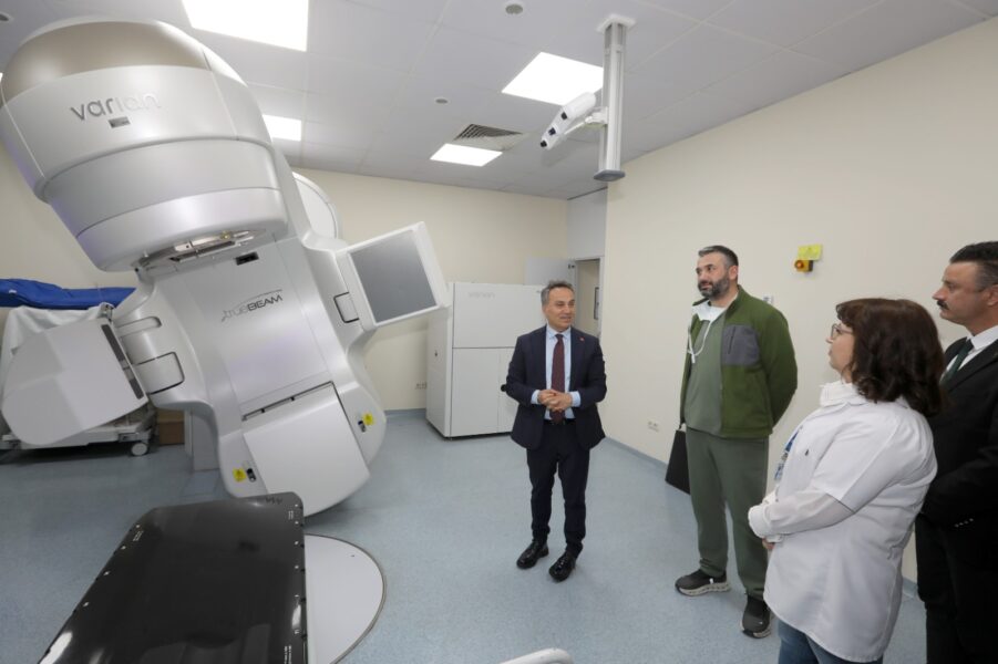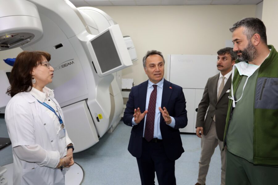 Ziyaret sırasında Doç. Dr. Gülhan Güler Avcı, Üniversite Hastanemize kazandırılan radyoterapi tedavi hızlandırıcı cihaz hakkında Rektörümüze bilgi sundu. Modern teknolojiye sahip cihazın, kanser tedavisinde önemli bir rol üstlendiği belirtildi.