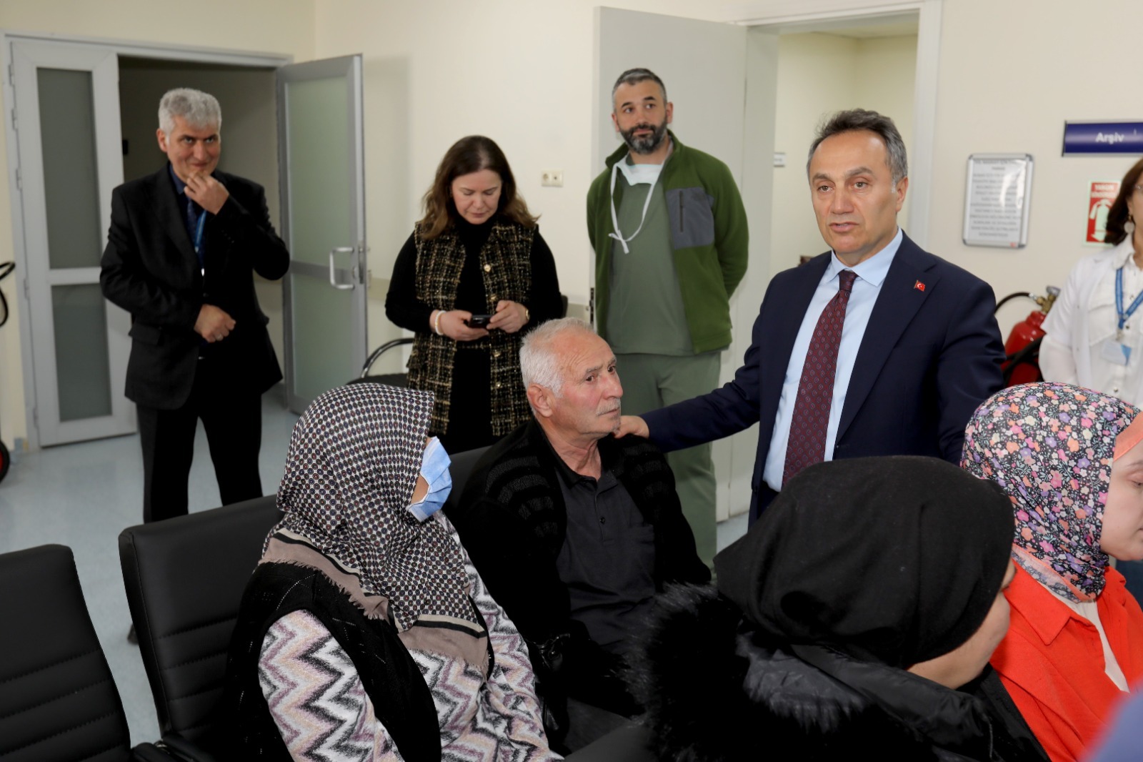 Ziyaret kapsamında hasta ve hasta yakınlarıyla bir araya gelen Rektörümüz, geçmiş olsun dileklerini ileterek moral verdi. TOGÜ olarak toplumun her kesimine dokunan hizmet ve projelere büyük önem verdiklerini vurgulayan Rektörümüz, bu çalışmaların artarak devam edeceğini ifade etti.