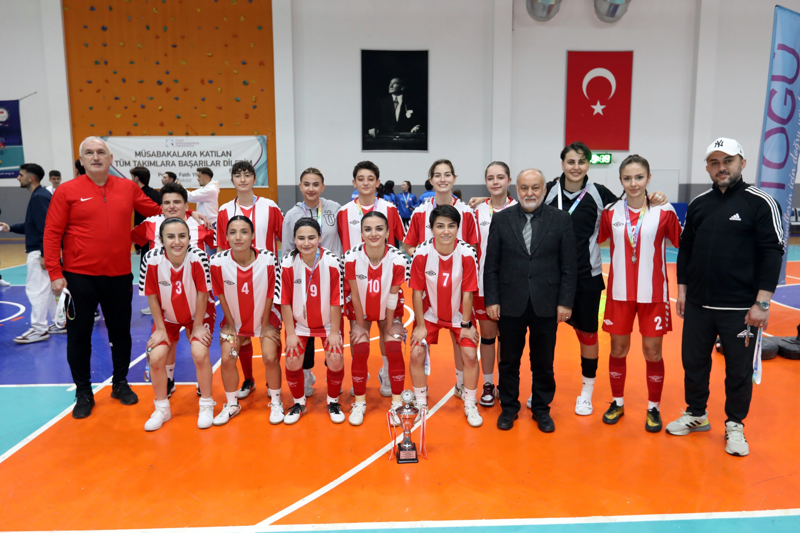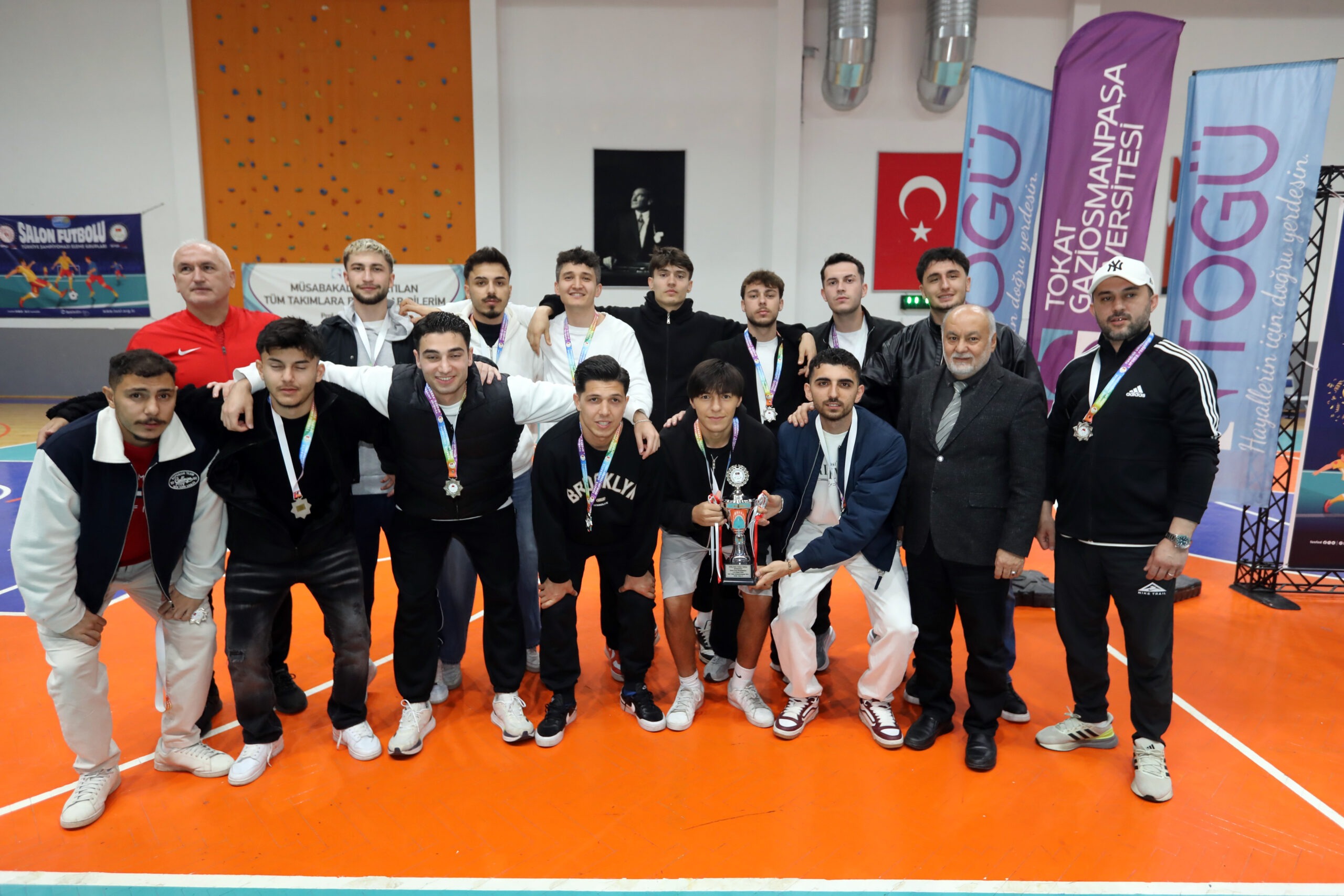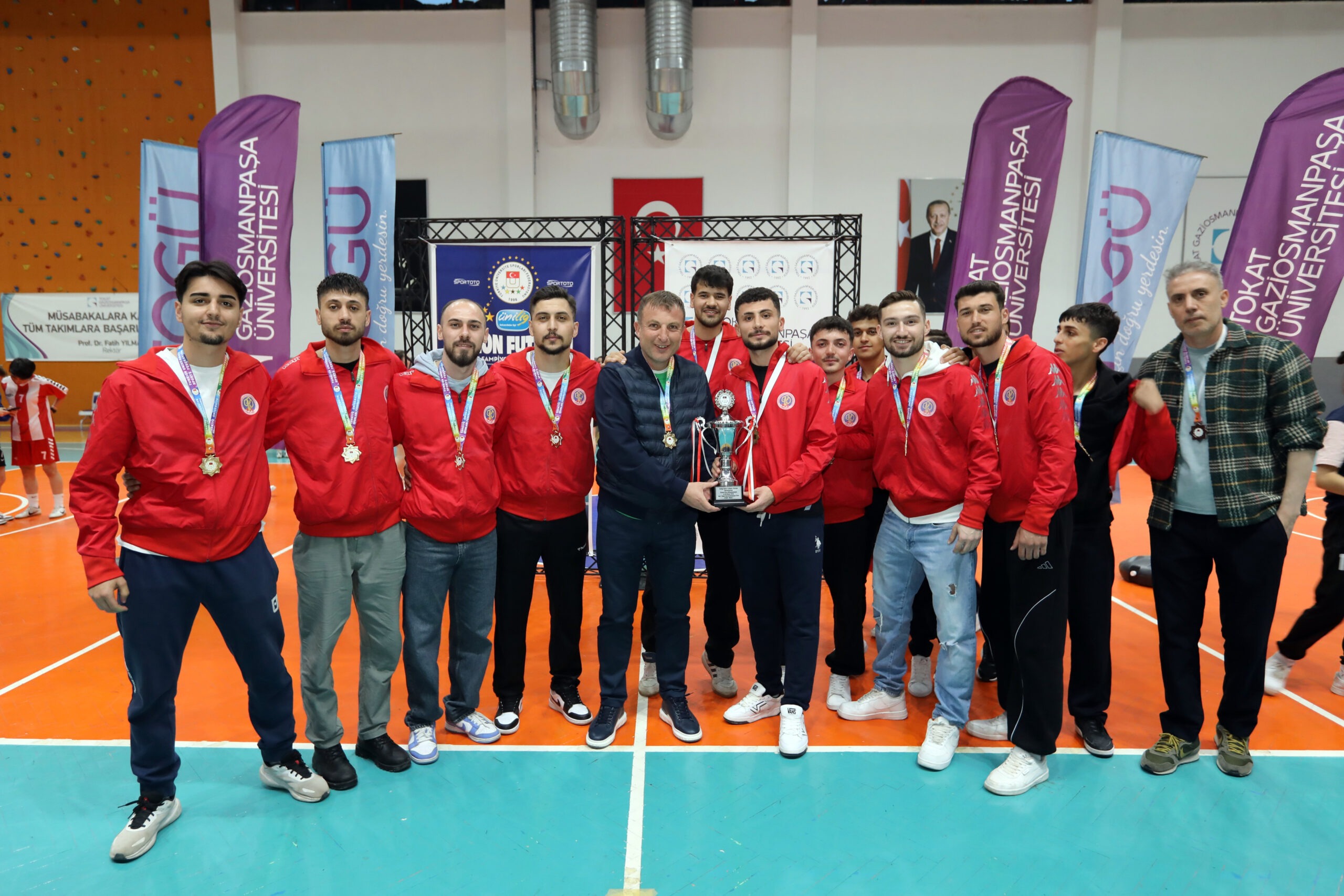 Türkiye Üniversite Sporları Federasyonu tarafından düzenlenen ÜNİLİG Salon Futbolu Grup Müsabakaları sona erdi. Üniversitemizin ev sahipliğinde 6-8 Nisan 2026 tarihleri arasında gerçekleştirilen organizasyon, büyük bir heyecana sahne oldu. Müsabakalar sonunda Üniversitemiz erkek takımı şampiyonluk ipini göğüsledi.