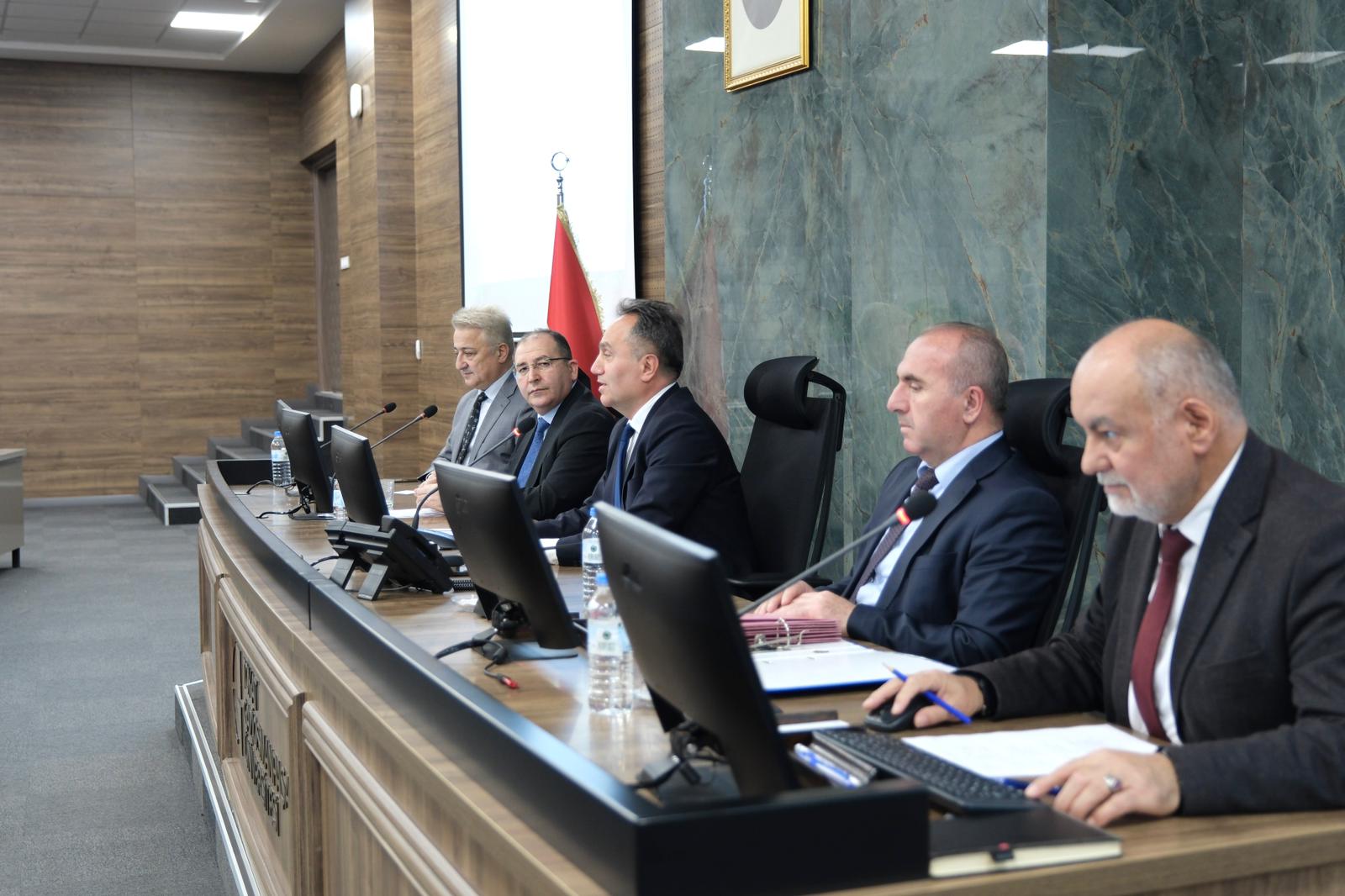 Üniversitemiz Yönetim Kurulu toplantısı, Rektörümüz Prof. Dr. Fatih Yılmaz başkanlığında gerçekleştirildi. Toplantıya Rektör Yardımcılarımız, Genel Sekreterimiz ve yönetim kurulu üyeleri katıldı. Üniversitenin akademik ve idari süreçlerine ilişkin çeşitli konuların ele alındığı toplantıda, değerlendirme ve istişarelerde bulunuldu.
