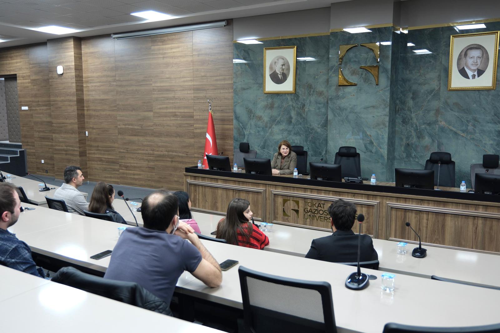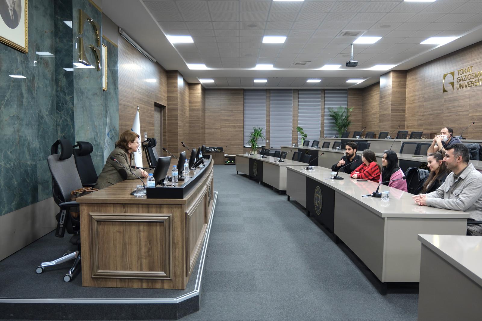 Sonrasında Azerbaycan Cumhuriyeti Büyükelçiliği Eğitim Müşaviri Doç. Dr. Necibe Nesibova Üniversitemizde eğitim gören Azerbaycanlı öğrencilerle Senato Odasında bir araya gelerek sohbet etti.