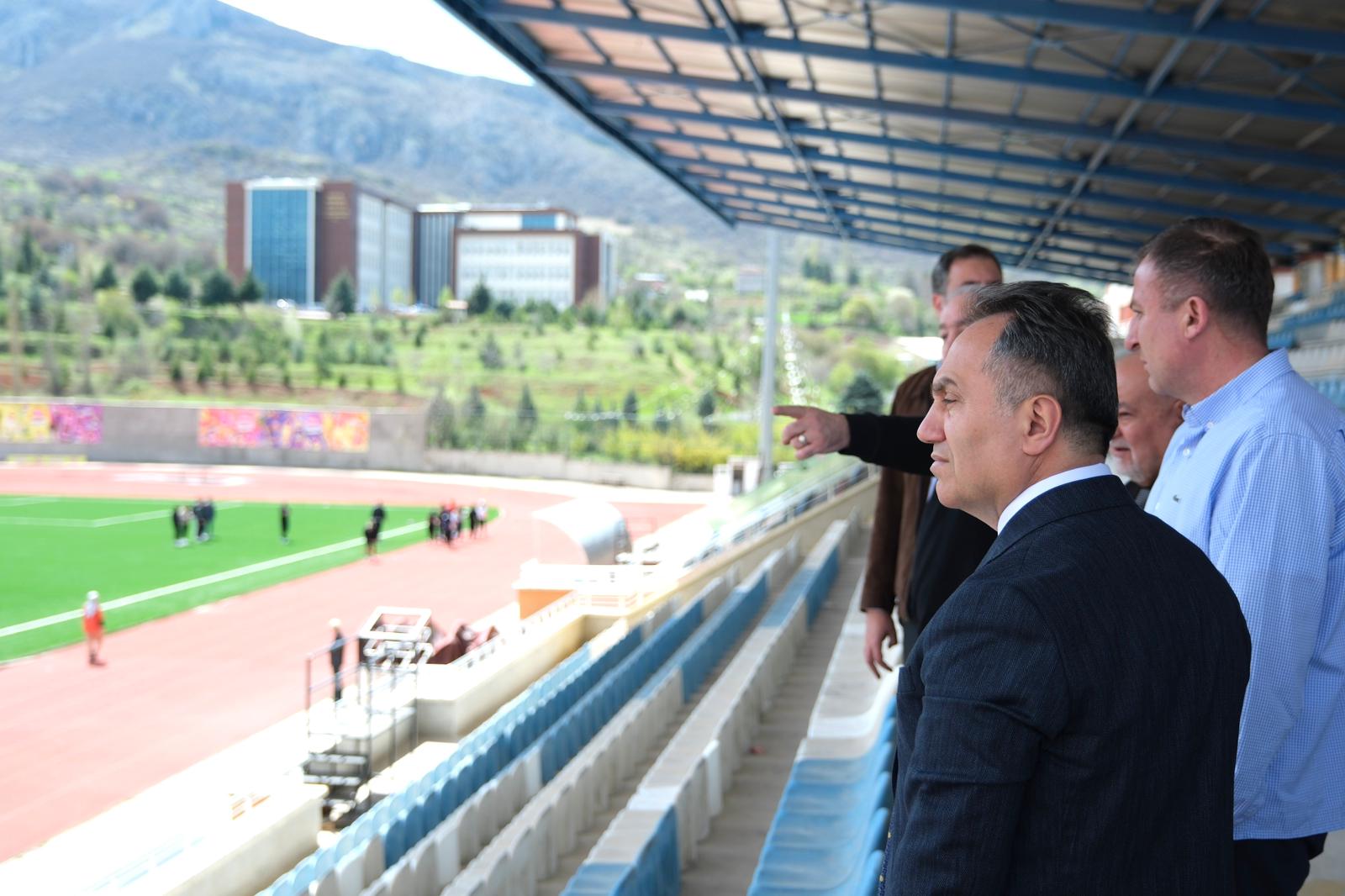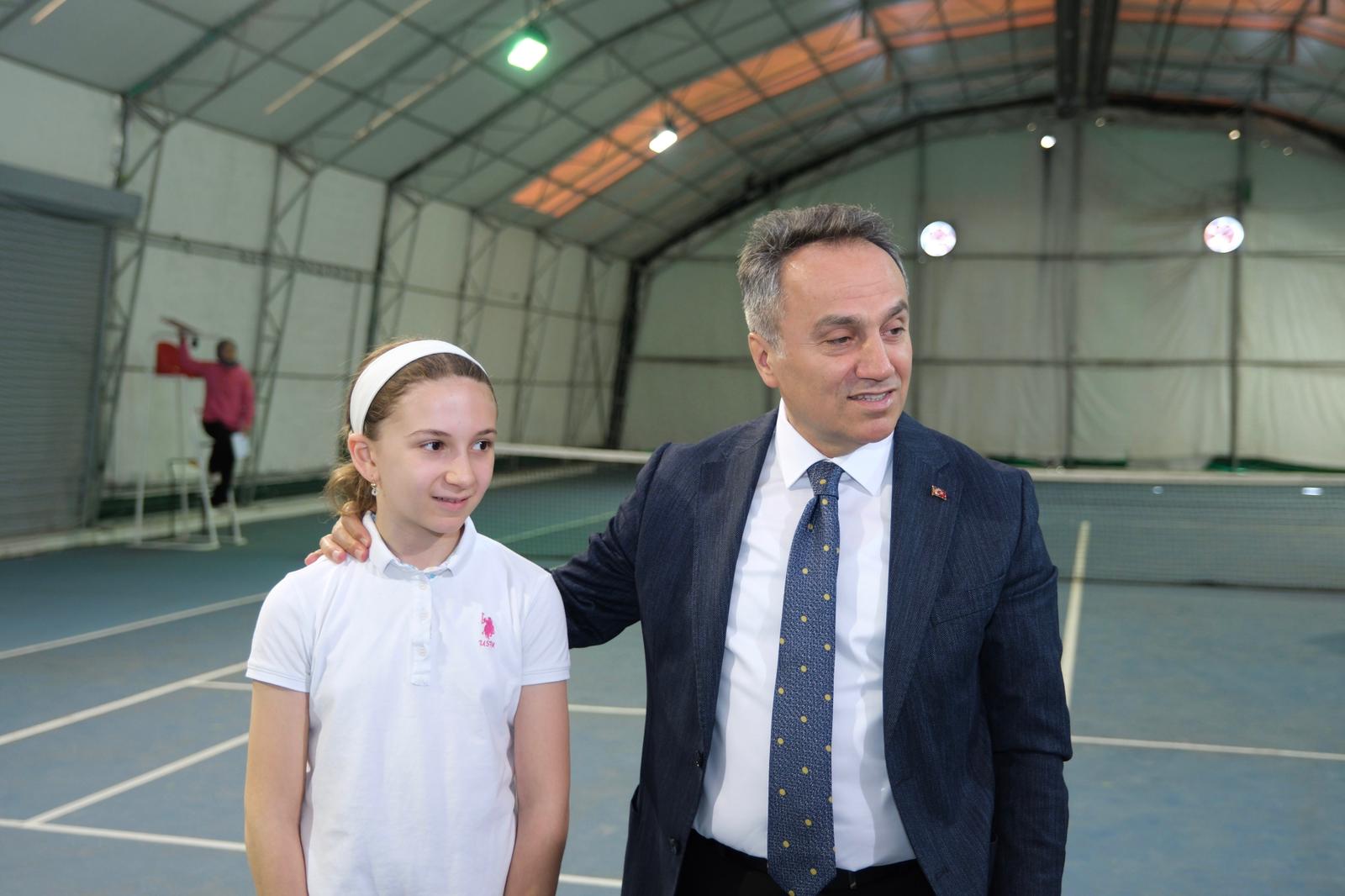 Kapalı tenis kortunda devam eden bir müsabakanın da yerinde gözlemlendiği toplantı kapsamında, üniversitemizin yalnızca kendi öğrencilerine değil, aynı zamanda Milli Eğitim başta olmak üzere çeşitli kamu kurum ve kuruluşlarının spor organizasyonlarına da ev sahipliği yaptığı vurgulandı.