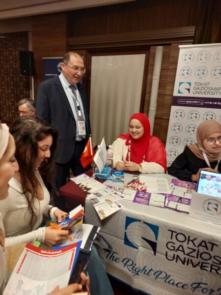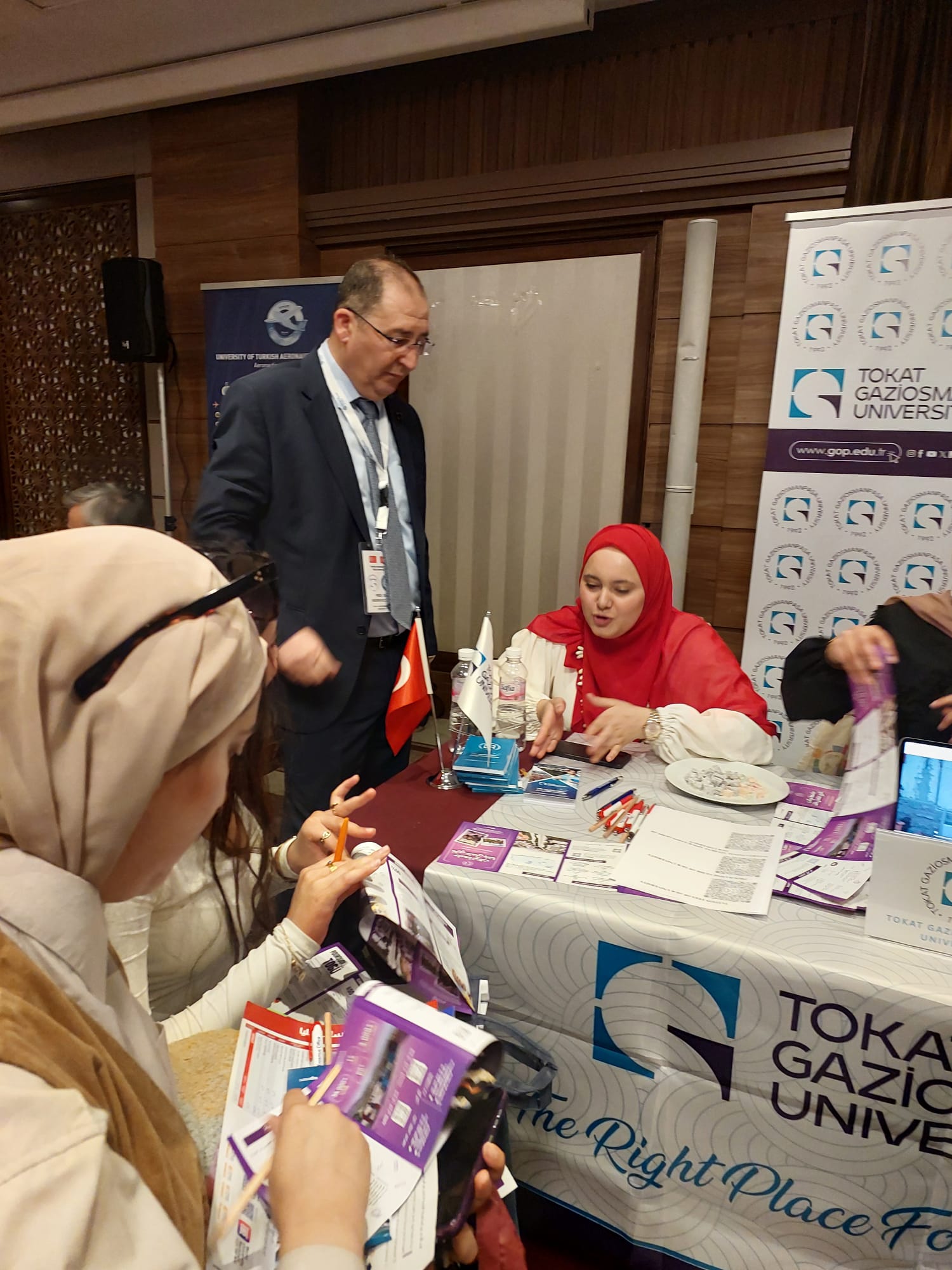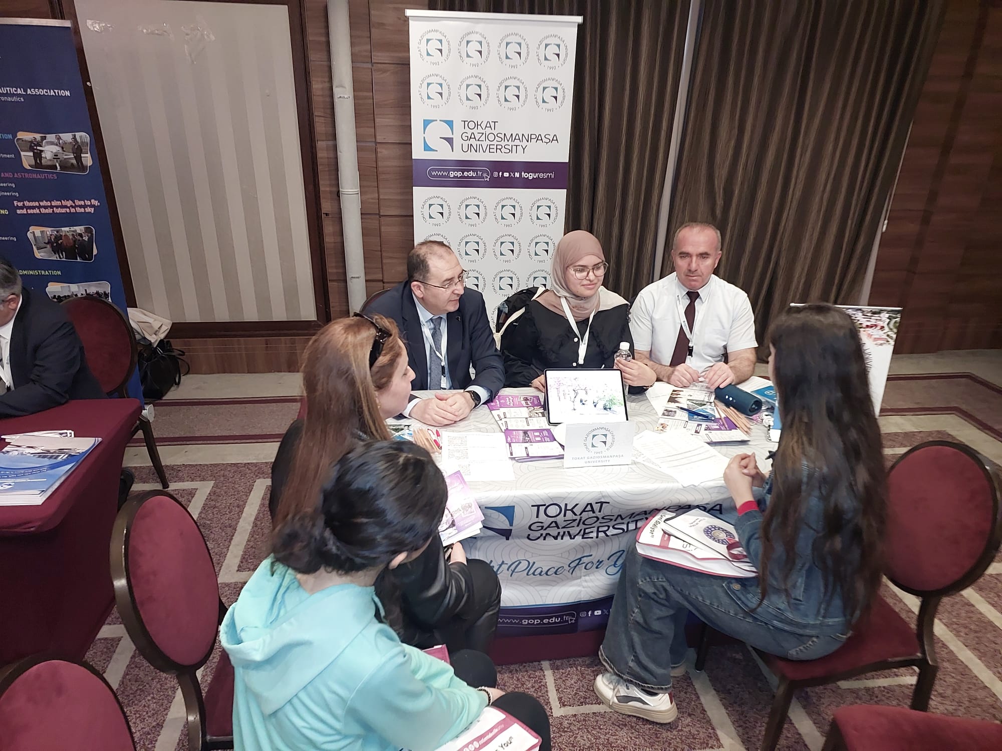 Fuar kapsamında Rektör Yardımcılarımız Prof. Dr. Yusuf Temür ve Prof. Dr. Rasim Koçyiğit üniversitemizi temsilen yer aldı. Rektör yardımcılarımız, standımızı ziyaret eden öğrencilere üniversitemizin eğitim-öğretim olanakları, akademik programları ve uluslararası fırsatları hakkında kapsamlı bilgiler sundu.