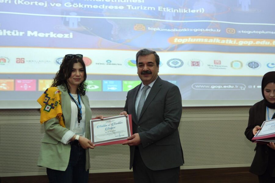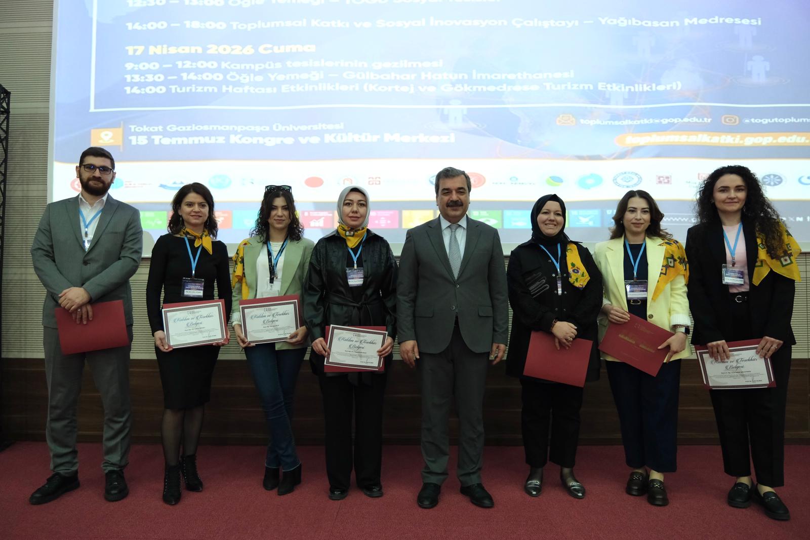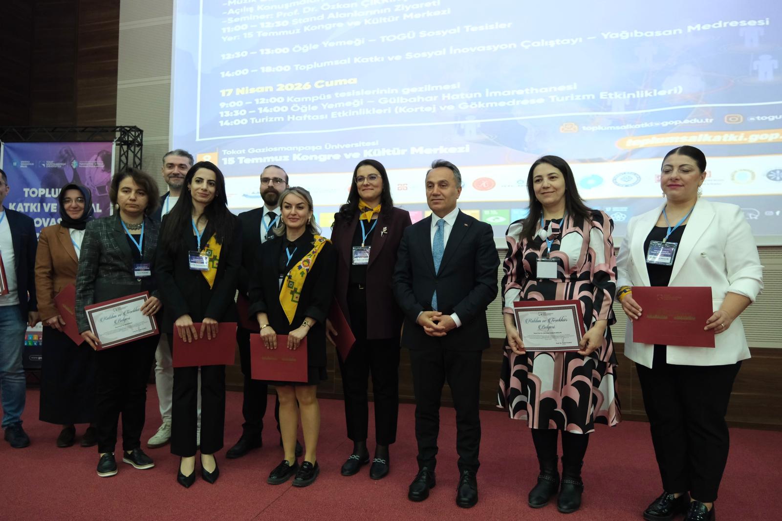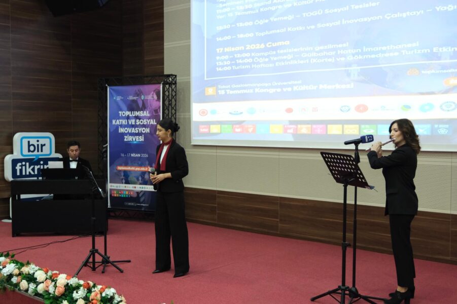 Programda konuşan Rektörümüz Prof. Dr. Fatih Yılmaz, toplumsal katkının üniversitemizin temel yaklaşımının merkezinde yer aldığını vurgulayarak, “TOGÜ olarak bizler toplumsal katkıyı bir faaliyet alanı olarak değil, kurumsal sorumluluğumuzun ayrılmaz bir parçası ve stratejik bir öncelik olarak görüyoruz” dedi. Rektörümüz, bu anlayış doğrultusunda yürütülen çalışmaların sağlıktan eğitime, tarımdan teknolojiye, kültürden sosyal sorumluluk projelerine kadar geniş bir alanı kapsadığını belirterek, üniversitemizin toplumun farklı kesimlerine dokunan çok yönlü bir etki oluşturduğunu ifade etti. Toplumsal katkıyı yalnızca mevcut sorunlara çözüm üretmek olarak değil, aynı zamanda geleceği inşa eden bir süreç olarak değerlendirdiklerini dile getiren Rektörümüz, bu vizyonun üniversitenin birçok faaliyetlerine yön verdiğini söyledi. Zirve kapsamında gerçekleştirilecek oturum ve paylaşımların önemine de değinen Rektörümüz, bu buluşmanın yeni iş birliklerinin önünü açacağını ve üniversitelerin toplumsal etki kapasitesini daha ileriye taşıyacağını kaydetti. Rektörümüz ayrıca, Anadolu Üniversiteler Birliği çatısı altındaki üye üniversitelere teşekkür ederek, “Bu vizyonu birlikte büyüttüğümüz tüm paydaşlarımıza ve katılım sağlayan kıymetli misafirlerimize teşekkür ediyorum” ifadelerini kullandı.