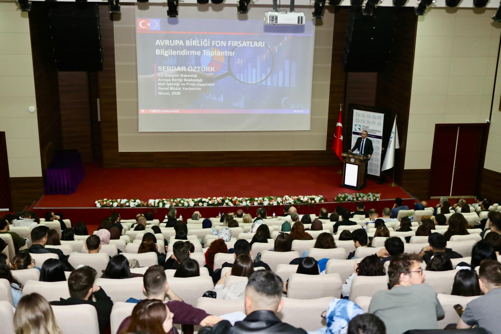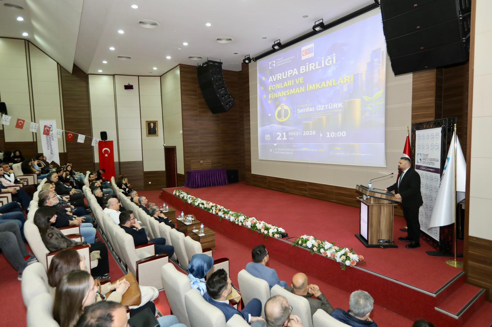 Üniversitemiz tarafından düzenlenen “Avrupa Birliği Fonları ve Finansman İmkânları” programı, 15 Temmuz Kongre ve Kültür Merkezi Milli İrade Salonu’nda yoğun katılımla gerçekleştirildi. Programa Rektör Yardımcısı Prof. Dr. Yusuf Temür, Rektör Danışmanı Prof. Dr. Onur Saraçoğlu, dekanlar, akademik personel ve çok sayıda öğrenci katıldı.