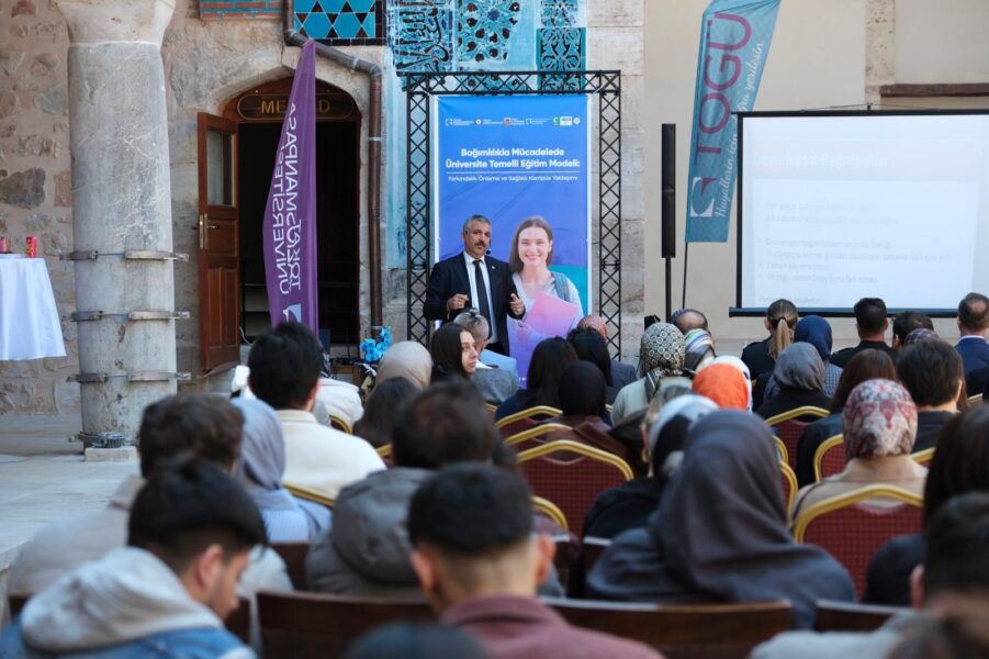 Üniversitemiz, genç nesilleri bağımlılığın her türlüsünden korumak ve toplumsal farkındalığı artırmak adına dev bir adım attı. TOGÜ Bağımlılıkla Mücadele Koordinatörlüğü tarafından hazırlanan ve Yeşilay iş birliğiyle yürütülen “Bilinçli Nesiller, Bağımsız Gelecek” projesi TOGÜ Gökmedrese Bilim ve Kültür Merkezi’nde yapılan törenle başlatıldı.
