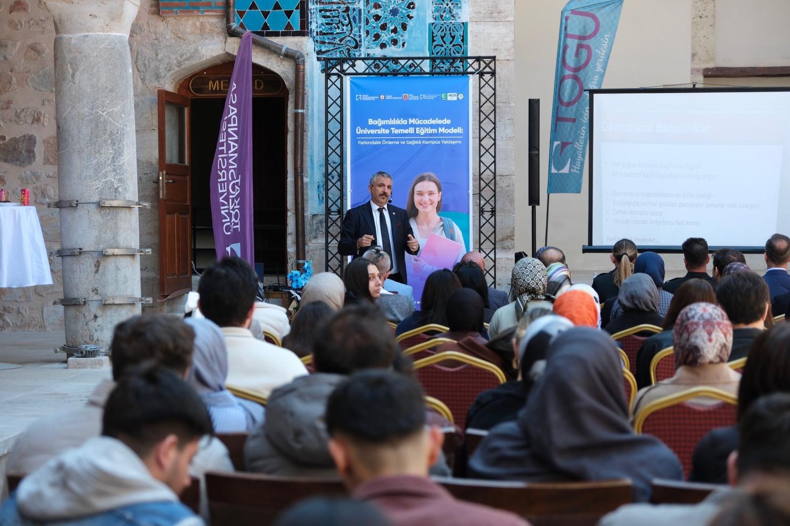 Programın konuşmacısı olan Yeşilay Bilim Kurulu Üyesi Prof. Dr. Volkan Kara, bağımlılığın yalnızca bireysel değil aynı zamanda toplumsal bir sorun olduğuna dikkat çekti. Kara, üniversitelerin bu süreçte kritik bir rol üstlendiğini belirterek, gençlerin doğru bilgiyle donatılmasının ve sağlıklı yaşam alışkanlıkları kazandırılmasının güçlü bir toplumun inşasında belirleyici olduğunu ifade etti.