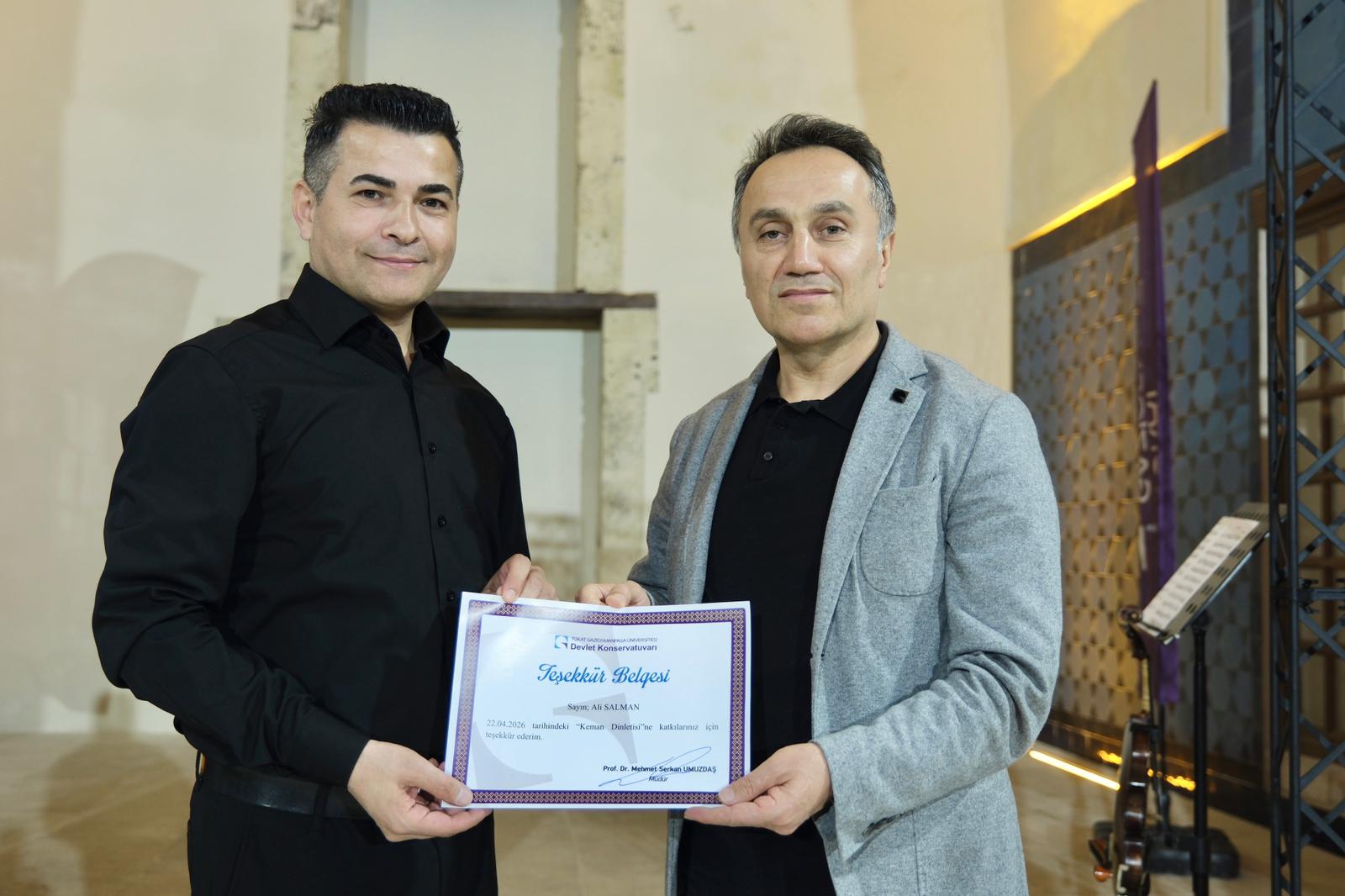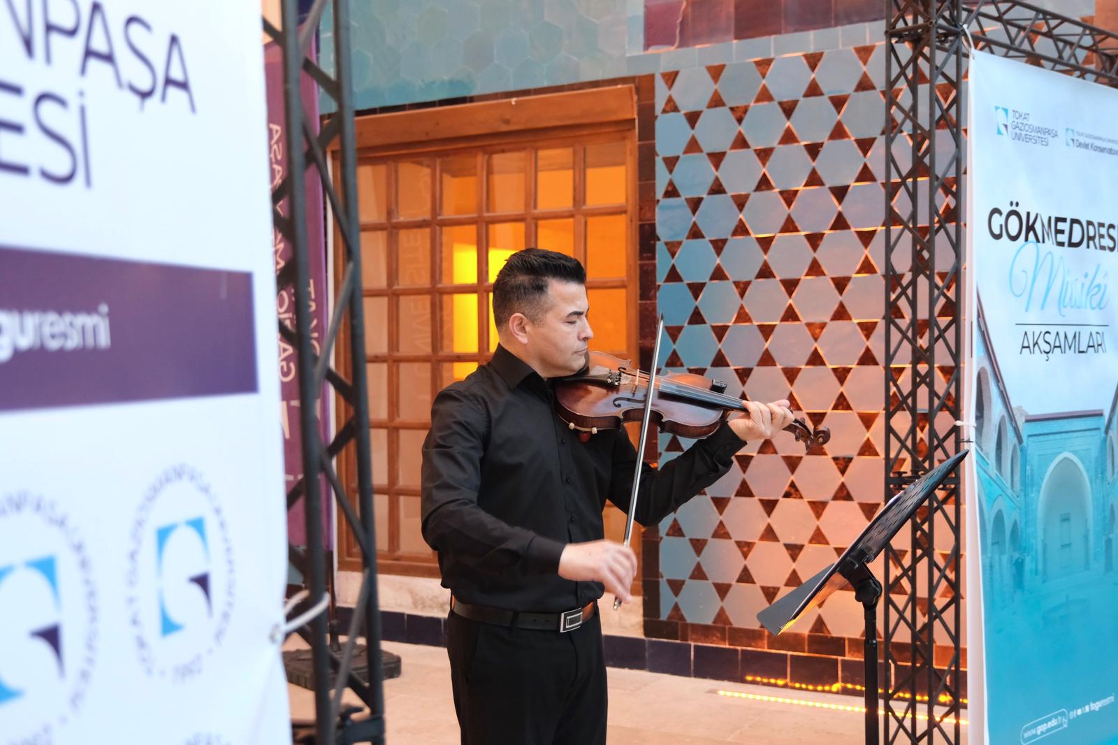 Tokat Gaziosmanpaşa Üniversitesi Devlet Konservatuvarı tarafından gerçekleştirilen etkinlik dizisi, Gökmedrese Bilim ve Kültür Merkezi’nin tarihi dokusunda kapılarını açtı. Dönemin ilk programına Rektörümüz Prof. Dr. Fatih Yılmaz, Rektör Yardımcımız Prof. Dr. Yusuf Temür, Devlet Konservatuvarı Müdürü Prof. Dr. Serkan Umuzdaş, akademik ve idari personelimiz ile çok sayıda sanatsever katıldı.