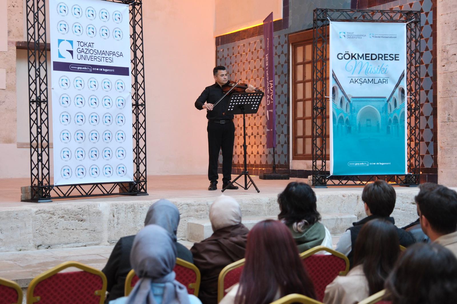 Üniversitemiz tarafından düzenlenen “Gökmedrese Musiki Akşamları” serisinin ilk programı olan “Keman Dinletisi”, tarihi atmosferde sanatseverlerle buluştu.
