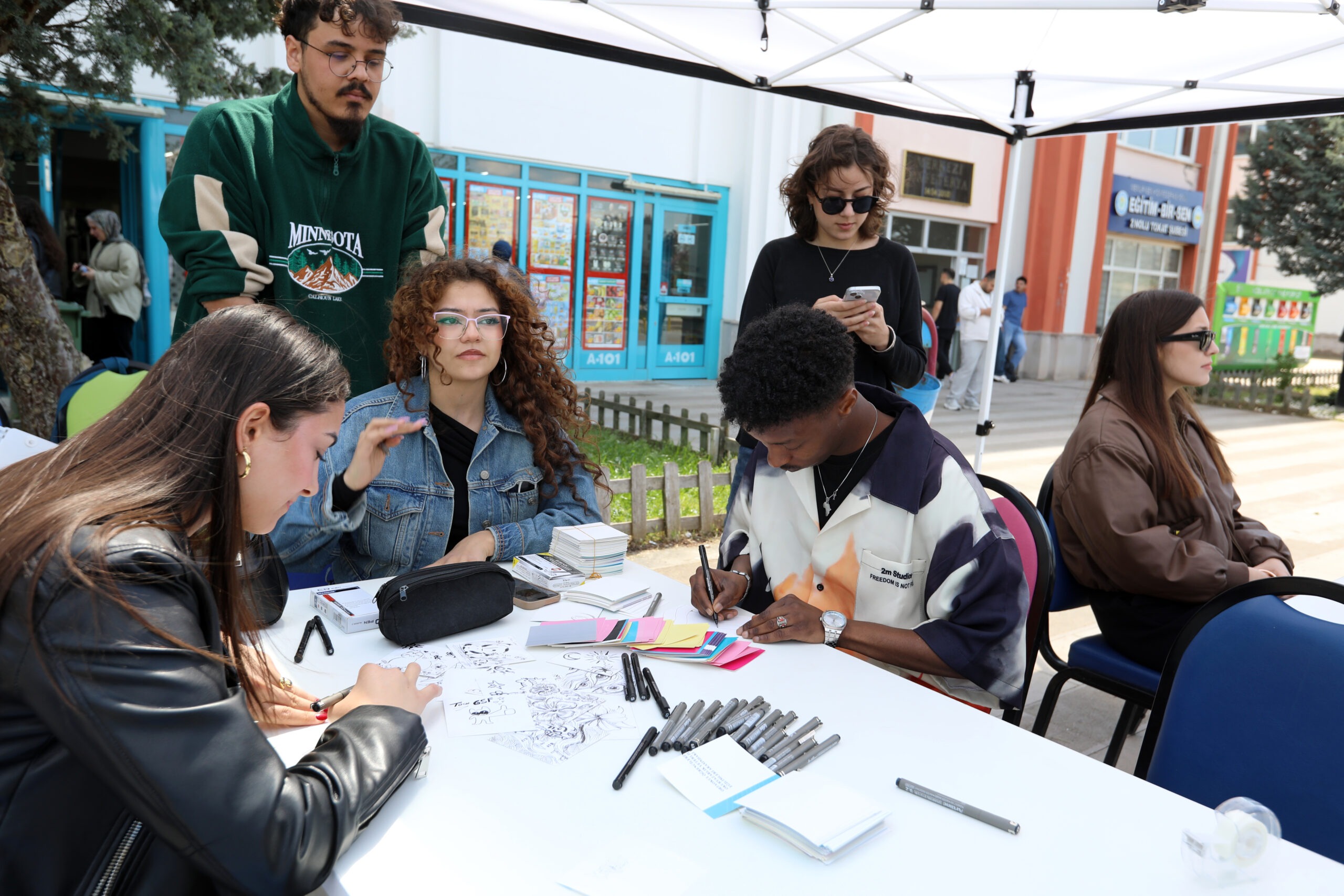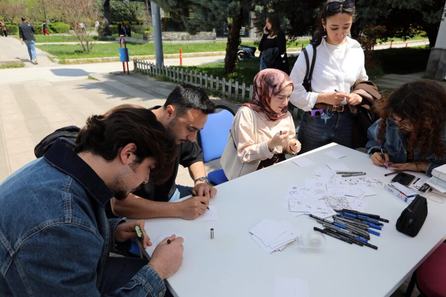 Etkinlikler kapsamında Grafik Tasarımı ve Fotoğraf Kulübü tarafından organize edilen “Bir Kare Senin” çizim etkinliği, katılımcıların hayal gücünü özgürce ifade edebileceği interaktif bir platform sundu. Fakülte öğrencilerinin yanı sıra farklı bölümlerden katılımın da olduğu etkinlikte, ortaya çıkan eserler gün boyunca sergilenerek ziyaretçilerin beğenisine sunuldu.