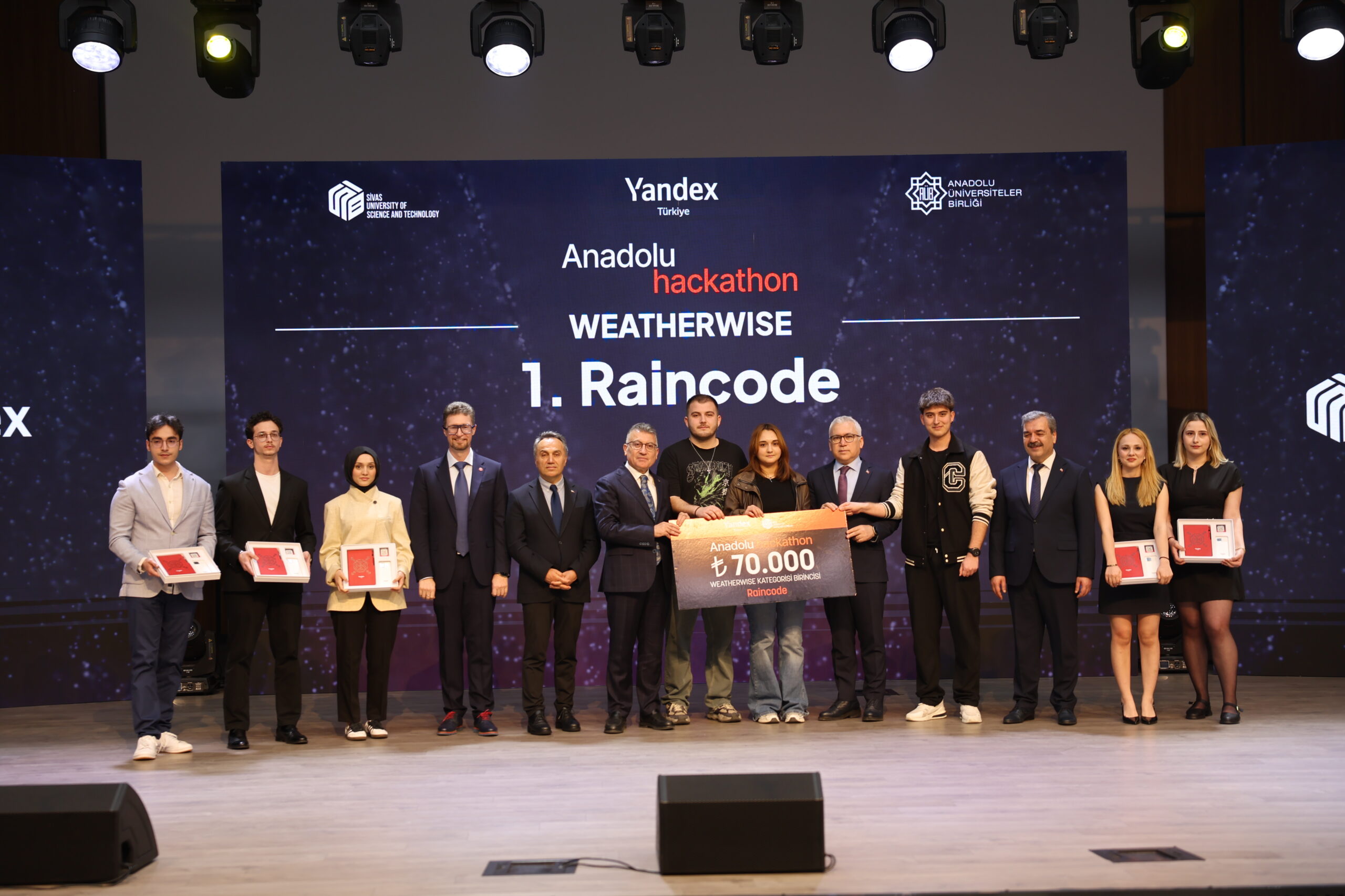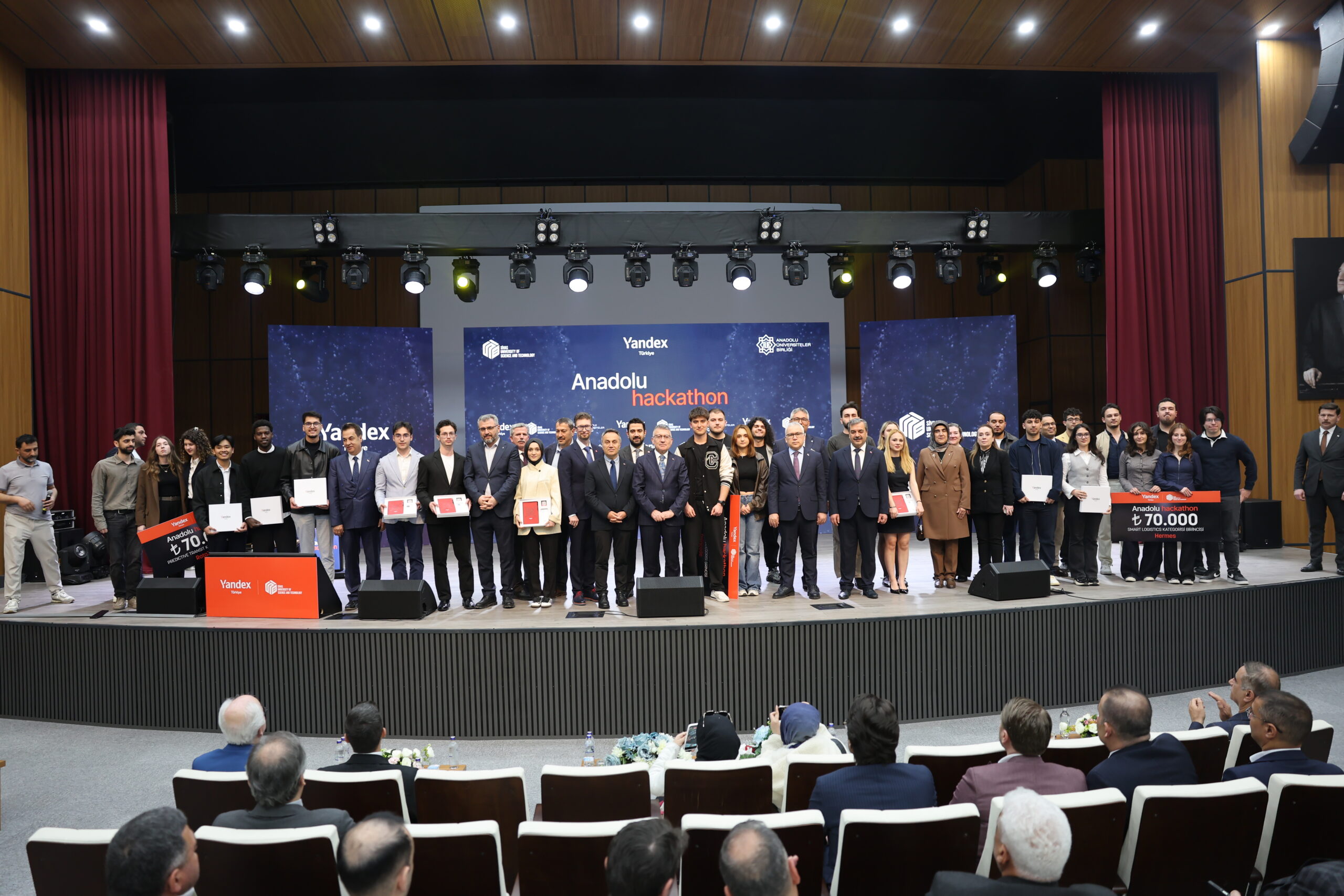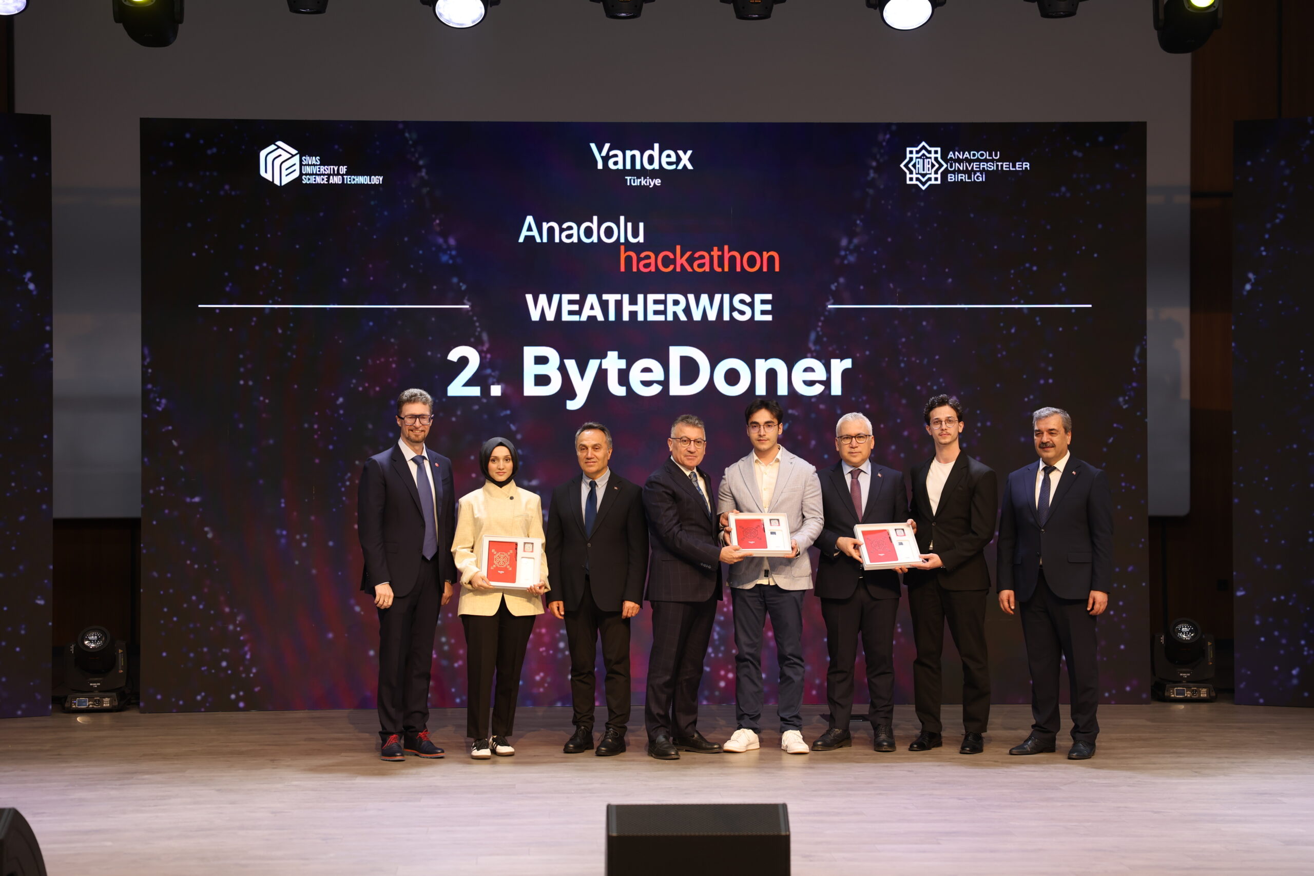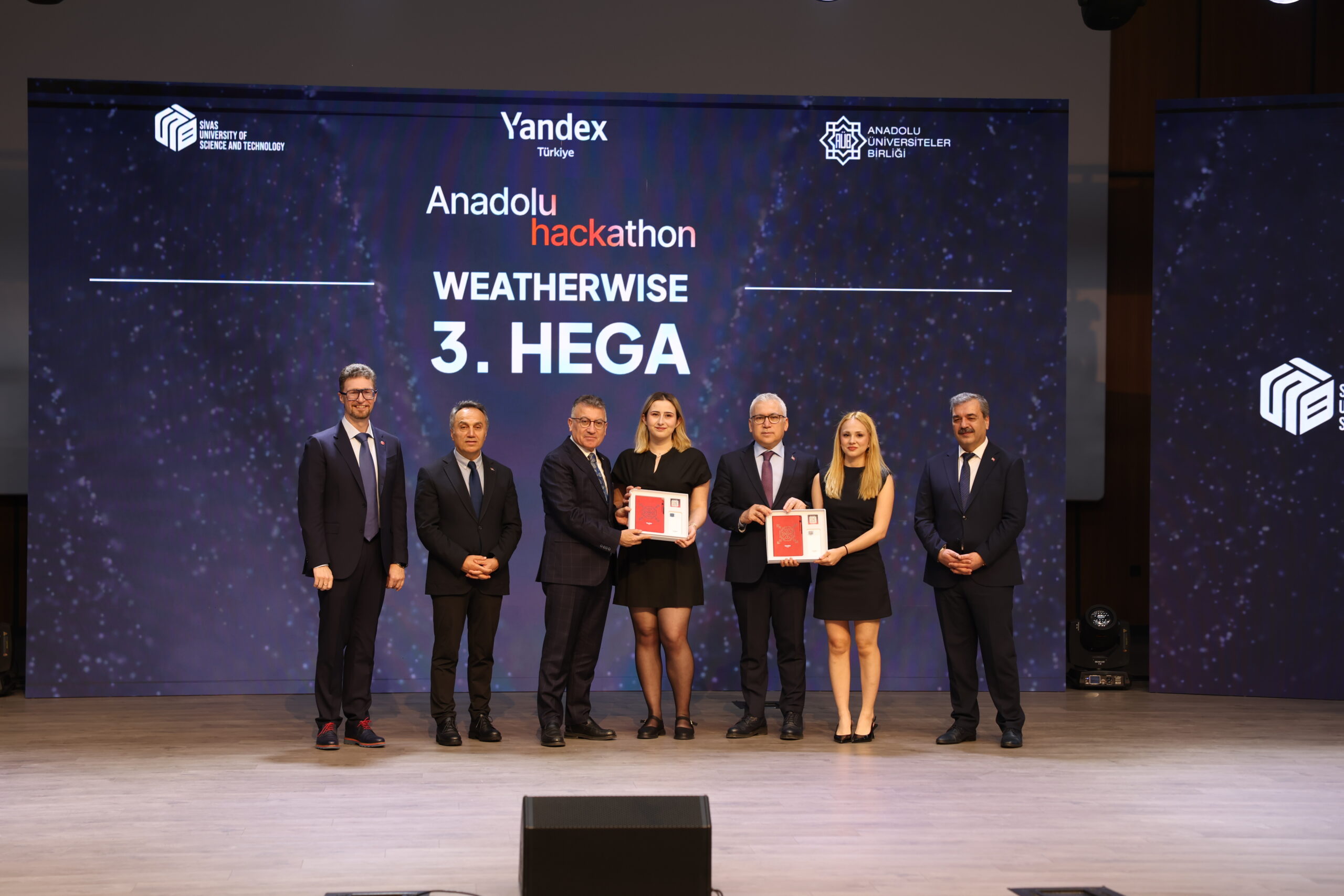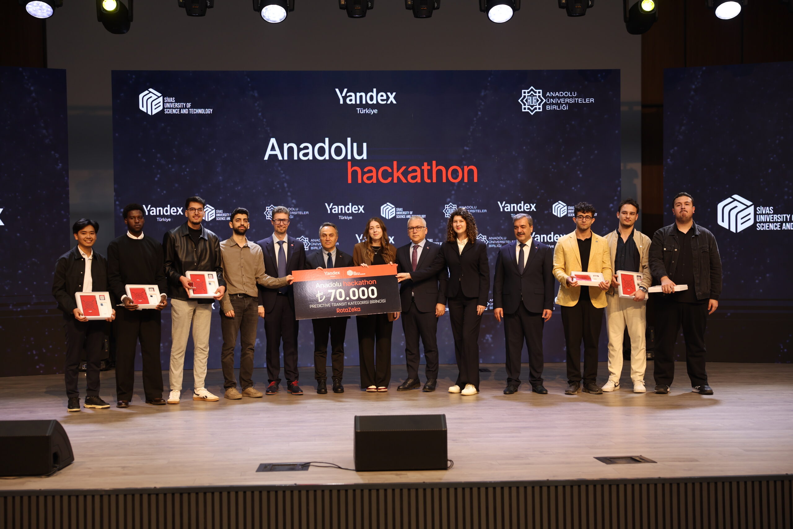 Sivas Bilim ve Teknoloji Üniversitesi (SBTÜ), Anadolu Üniversiteler Birliği ve Yandex Türkiye iş birliğiyle gerçekleştirilen Anadolu Hackathon’un ödül töreni tamamlandı. SBTÜ’de gerçekleşen kapanış ve ödül törenine AK Parti Grup Başkanı Abdullah Güler, Sivas Valisi Yılmaz Şimşek, Anadolu Üniversiteler Birliği Başkanı Rektörümüz Prof. Dr. Fatih Yılmaz, SBTÜ Rektörü Prof. Dr. Mehmet Kul, Yandex Türkiye Genel Müdürü ve Yandex Search International CEO’su Alexander Popovskiy ile il protokolü katıldı.