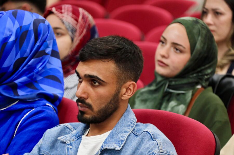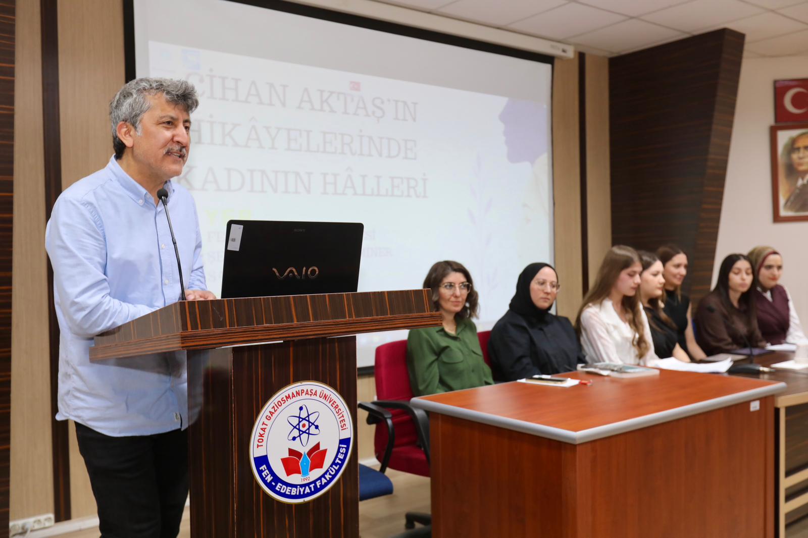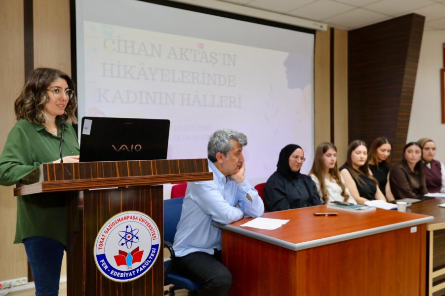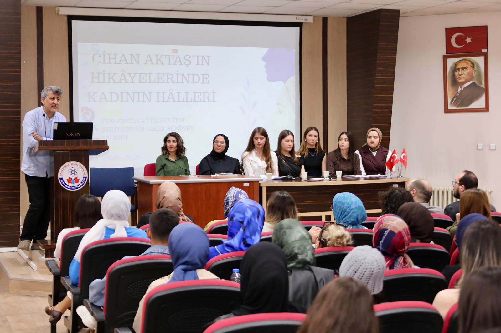 Üniversitemiz Fen-Edebiyat Fakültesi tarafından düzenlenen “Cihan Aktaş’ın Hikâyelerinde Kadının Halleri” başlıklı öğrenci paneli, edebiyatseverleri bir araya getirdi. Şehit Erdem Diker Seminer Salonu’nda yoğun bir katılımla gerçekleşen etkinlikte, yazarın eserlerindeki kadın temsilleri derinlemesine incelendi.