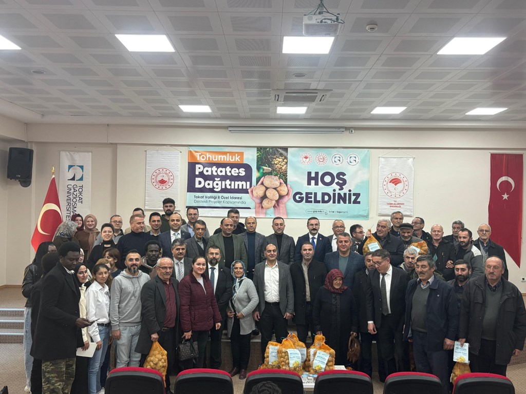 Tokat Valiliği İl Özel İdaresi destekli projeler kapsamında Üniversitemiz tarafından “Tohumluk Patates Dağıtımı Töreni" gerçekleştirildi. Reşadiye Meslek Yüksekokulunda düzenlenen törene Reşadiye Kaymakamı Ahmet Tan, Belediye Başkanı Ergün Ünal, Ziraat Fakültesi Dekanı Prof. Dr. Rüstem Cangi, Tokat İl Genel Meclis Başkanı Ali İhsan Gürel, Tarım ve Orman İl Müdür Yardımcısı Ümit Ok, Reşadiye MYO Müdürü Öğr. Gör. Dr. Oğuzhan Sönmez, İl Genel Meclis Üyeleri Halil İbrahim Demir, Yusuf Avşar, öğretim üyeleri, üreticiler ve öğrenciler katıldı.