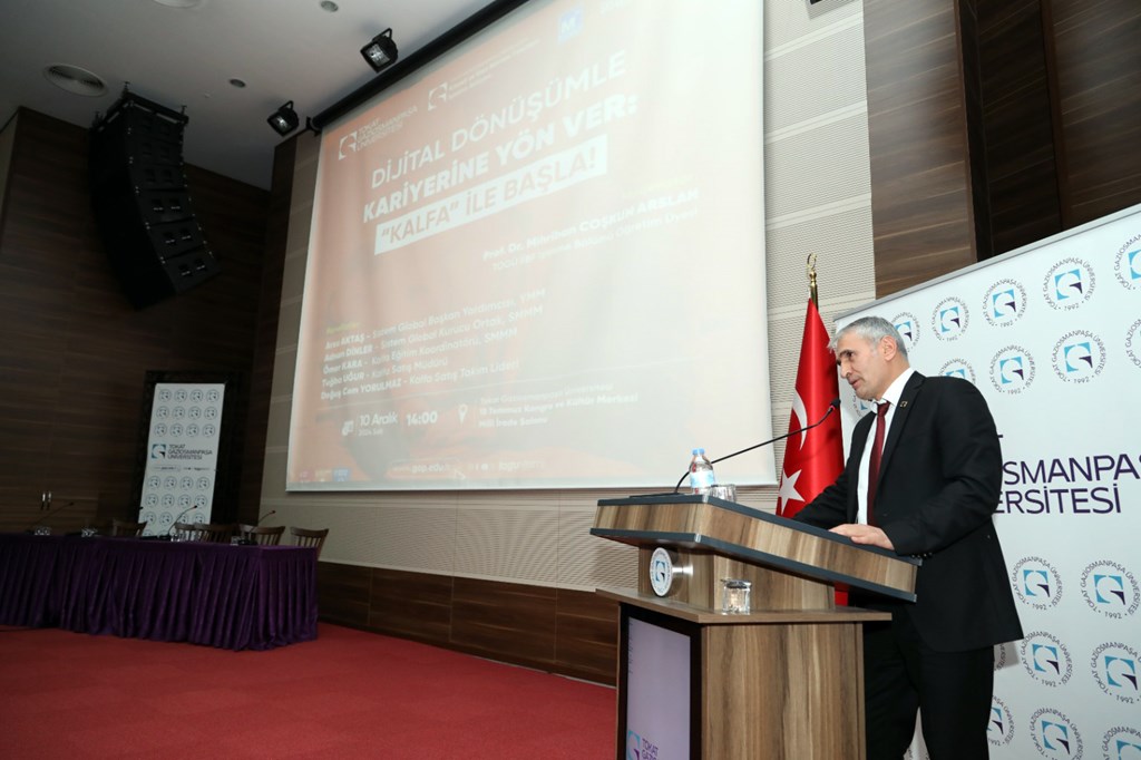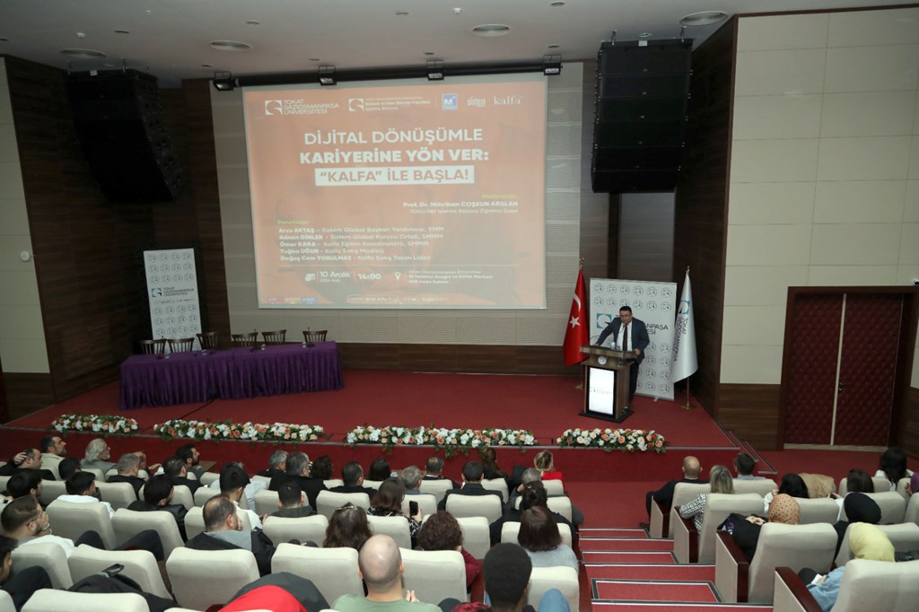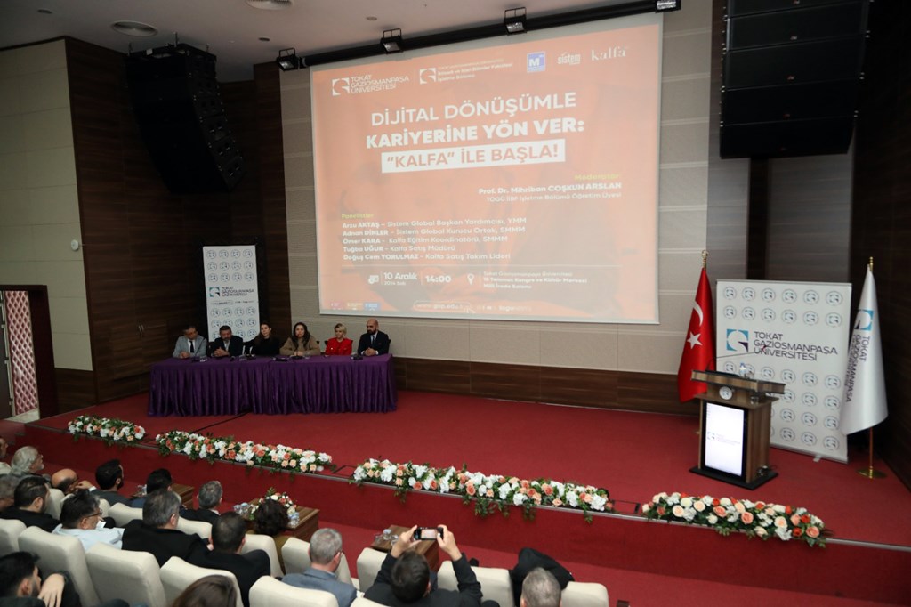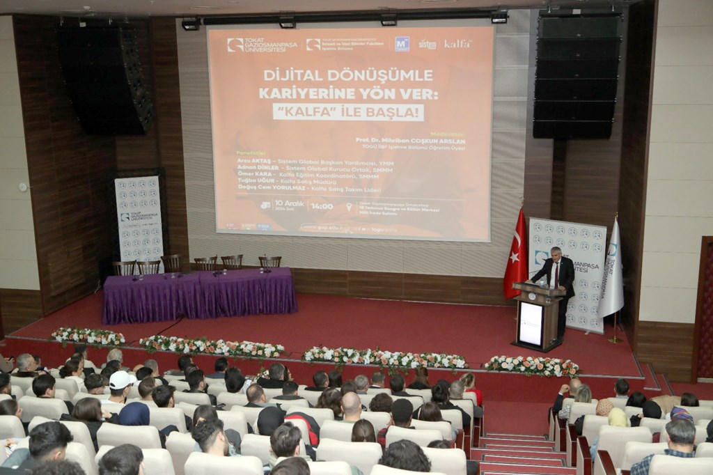 Üniversitemiz İktisadi ve İdari Bilimler Fakültesi İşletme Bölümü, Tokat Serbest Muhasebeci Mali Müşavirler Odası, Sistem Global Danışmanlık ve Kalfa Platformu iş birliğinde, 15 Temmuz Kongre ve Kültür Merkezi Milli İrade Salonu’nda “Dijital Dönüşümle Kariyerine Yön Ver: ‘Kalfa’ ile Başla!” başlıklı bir panel düzenlendi. Etkinliğe İktisadi ve İdari Bilimler Fakültesi Dekanı Prof. Dr. Rüştü Yayar, dekan yardımcıları, mali müşavirler, akademisyenler ve öğrenciler katıldı.