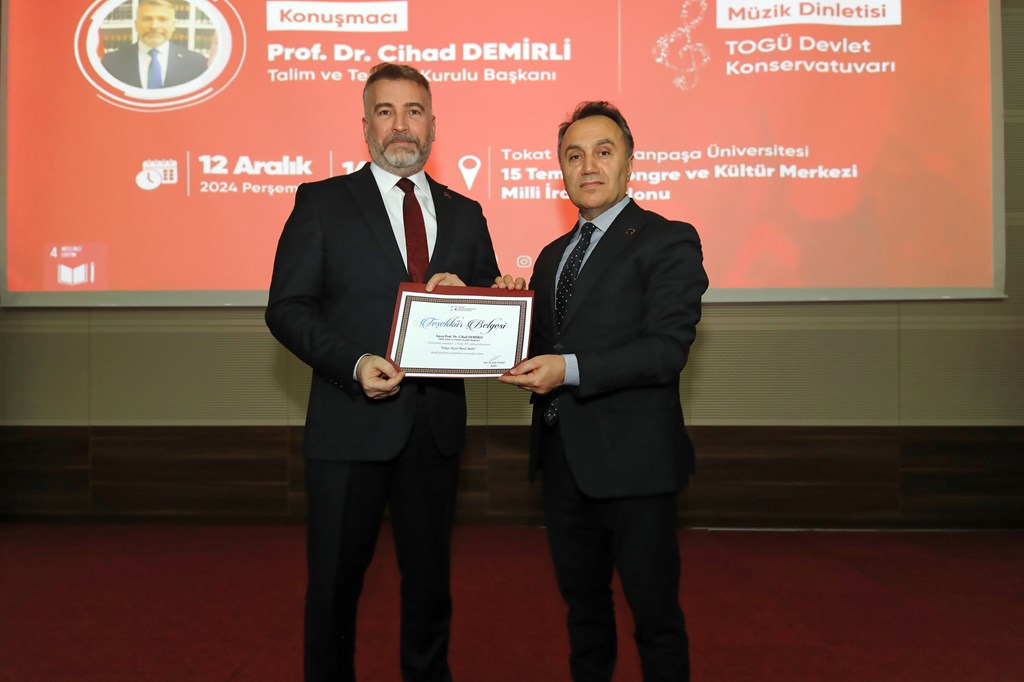 Konferans sonunda, Prof. Dr. Cihad Demirli’ye Rektörümüz Prof. Dr. Fatih Yılmaz tarafından teşekkür belgesi ve hediye takdim edildi.