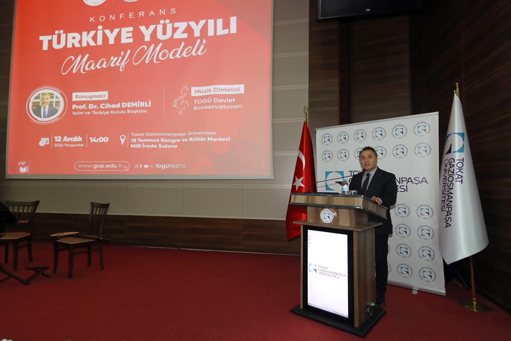 Üniversitemiz, Milli Eğitim Bakanlığı Talim ve Terbiye Kurulu Başkanı Prof. Dr. Cihad Demirli’nin konuşmacı olarak katıldığı “Türkiye Yüzyılı Maarif Modeli” başlıklı konferansa ev sahipliği yaptı. 15 Temmuz Kongre ve Kültür Merkezi Milli İrade Salonu’nda gerçekleşen konferansa, Rektörümüz Prof. Dr. Fatih Yılmaz, Talim ve Terbiye Kurulu Üyesi Levent Yazıcı, Tokat İl Milli Eğitim Müdürü Hüseyin Kır, rektör yardımcılarımız, dekanlarımız, genel sekreterimiz, akademik personelimiz, öğretmenler ve öğrenciler katıldı.