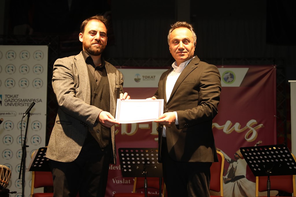 Tokat Mehmet Akif Ersoy İmam Hatip Ortaokulu Öğrencileri tarafından gerçekleştirilen ilahi dinletisi icra edildi. Üniversitemiz İslami İlimler Fakültesi Öğretim Üyesi Dr. Öğr. Üyesi Muhammed Yusuf Akbak tarafından Mesnevi hakkında bilgi verildi. Sivas Mevlana Kültürü ve Tasavvuf Derneği Heyet Başkanı Celaleddin Susamış tarafından Şeb-i Arûs’un önemi ve gerçekleştirilecek olan sema ayini hakkında bilgiler aktarıldı. Üniversitemiz Devlet Konservatuvarı Arş. Gör. Hasan Zahid Yurdagül tarafından yazılmış, “Hüseyni Aşîyan Şerifi" Üniversitemiz Devlet Konservatuvarı akademisyen ve öğrencileri tarafından icra edildi. Program sonrasında Tokat Valisi Abdullah Köklü, Tokat Belediye Başkanı Mehmet Kemal Yazıcıoğlu, Rektörümüz Prof. Dr. Fatih Yılmaz, İl Özel İdaresi Genel Sekreteri Ahmet Kayhan ve İl Genel Meclisi Başkanı Ali İhsan Güler tarafından teşekkür belgeleri takdim edildi.
