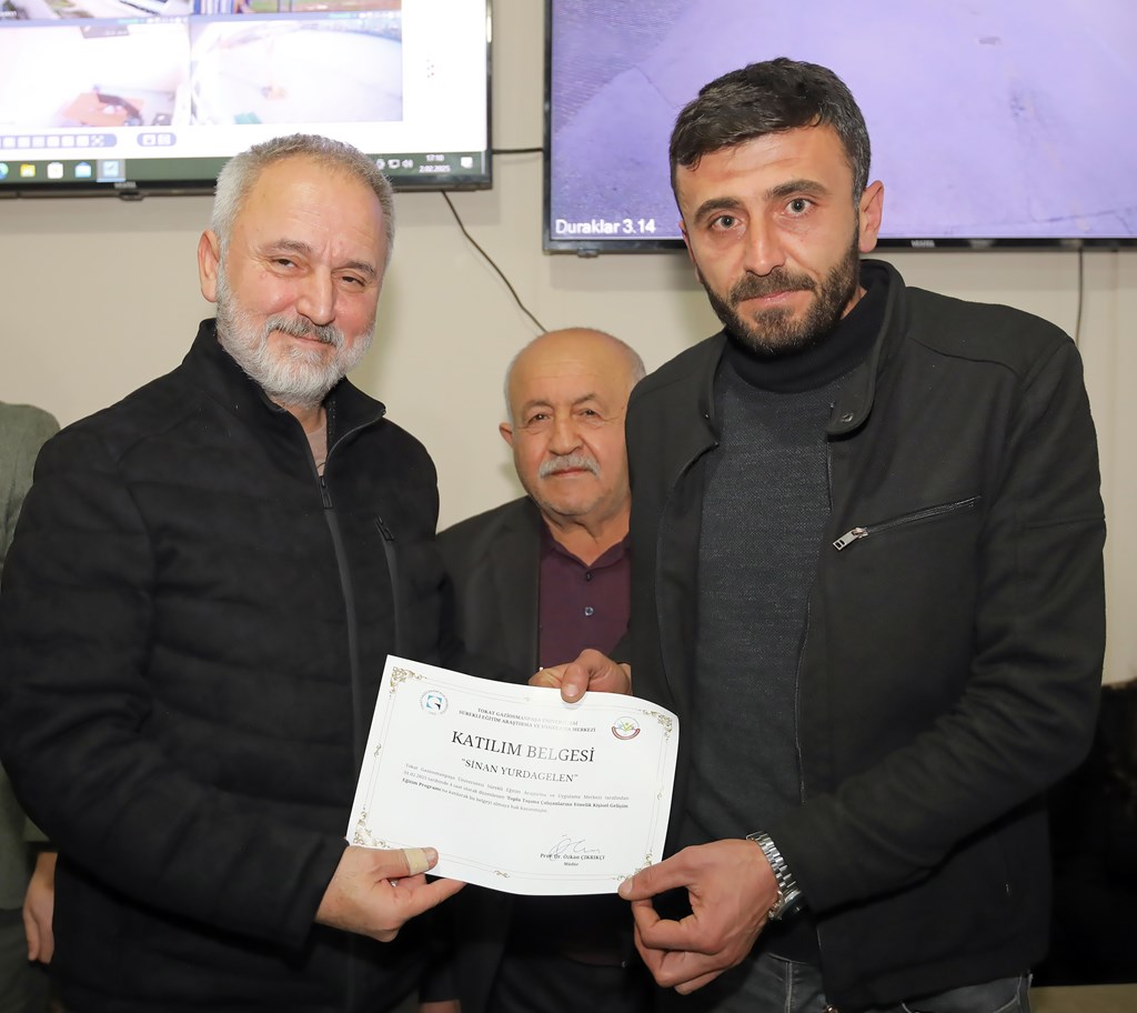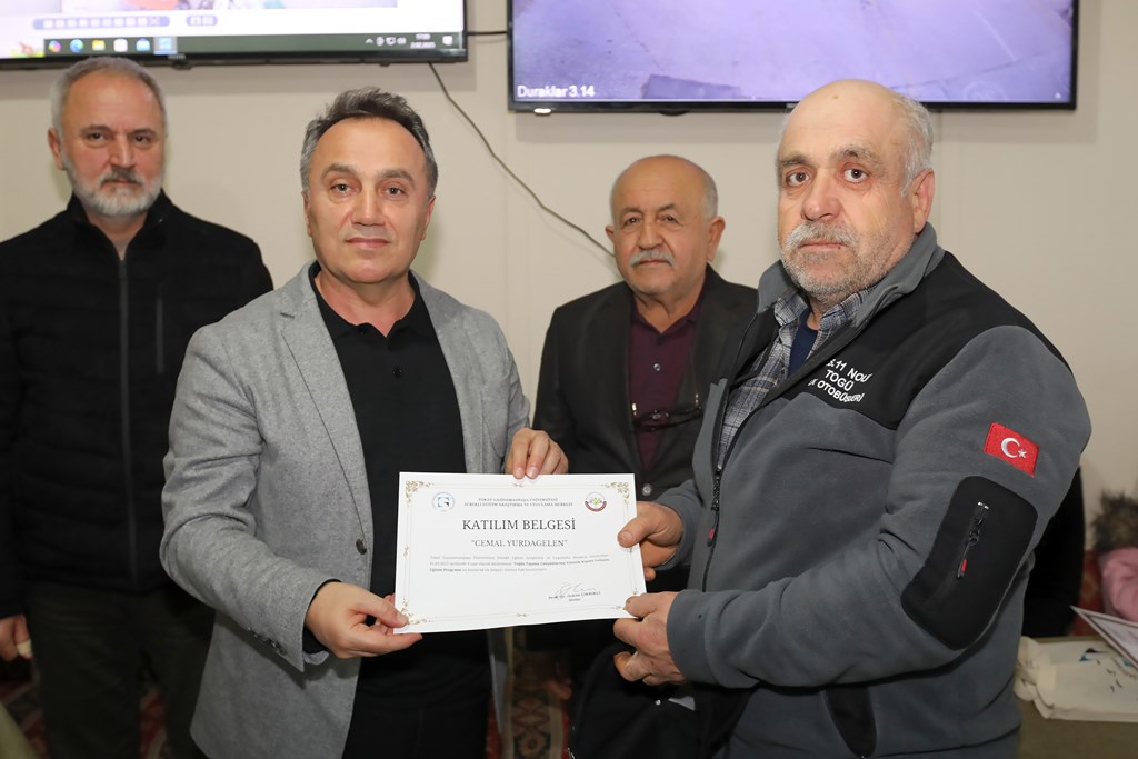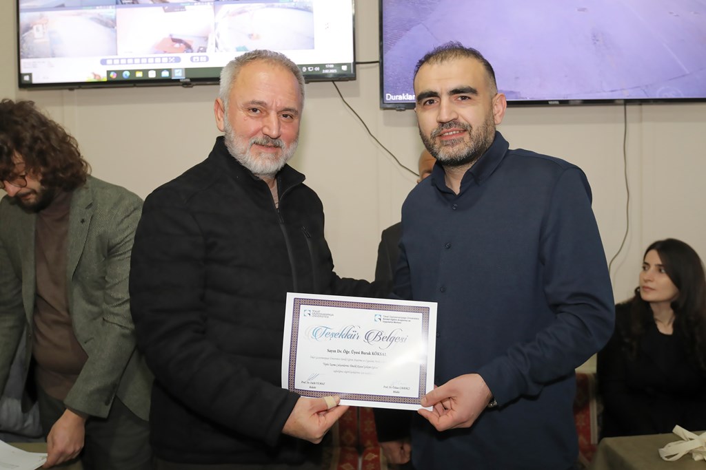 Eğitim programının sonunda, eğitimi veren akademisyenlere ve tüm katılımcılara teşekkür belgeleri Rektör Prof. Dr. Fatih Yılmaz, Belediye Başkan Yardımcısı İbrahim Hayri Korkmaz ve TOGÜSEM Müdürü Prof. Dr. Özkan Çıkrıkçı tarafından takdim edildi.