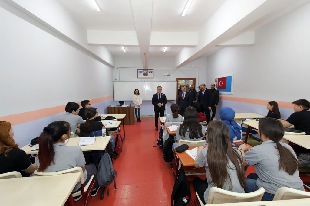 Lise Müdürü Prof. Dr. Turgut Atay'dan okulun akademik yapısı ve uygulamalı eğitim modeli hakkında bilgi alan Rektörümüz, ardından sınıfları gezerek öğrencilerle sohbet etti. Öğrencilere hitaben yaptığı konuşmada, üniversite kampüsü içinde yer alan bu özel lisenin sunduğu ayrıcalıklara dikkat çekti: