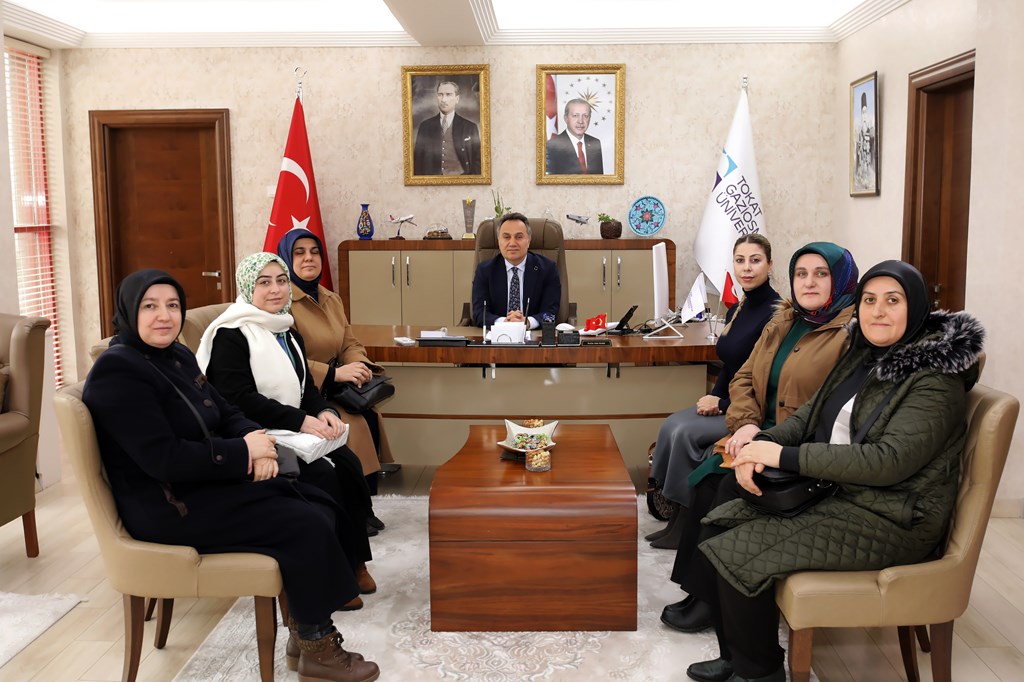 Şehrimizde faaliyet gösteren Yeşilırmak Kadın Kooperatifi üyeleri, Rektörümüz Prof. Dr. Fatih Yılmaz’ı makamında ziyaret etti. Ziyaret sırasında Öğr. Gör. Bahar Kayar Çelik, kooperatifin yürüttüğü çalışmalar, projeler ve toplumda sağladığı etkiler hakkında bilgi verdi.