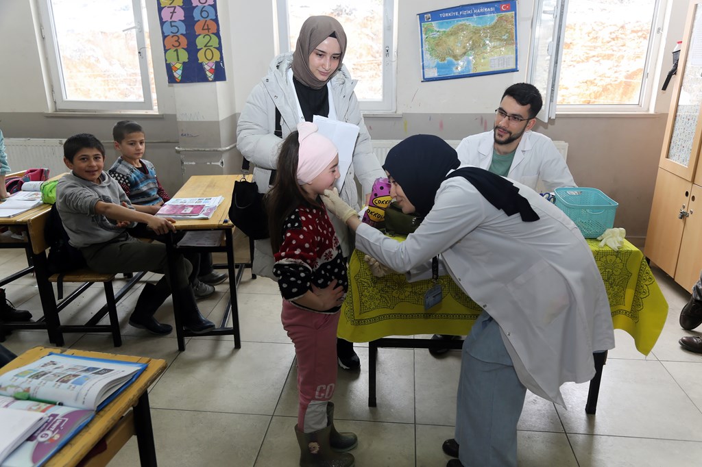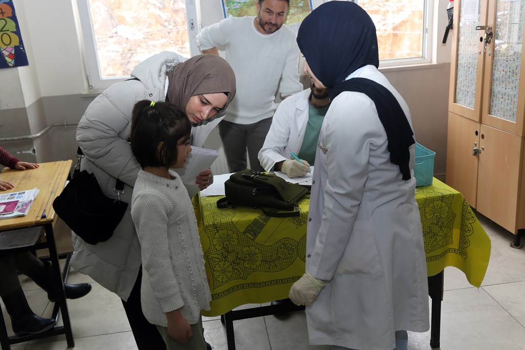Öğrencilere yapılan muayeneler kapsamında genel sağlık değerlendirmesi, büyüme-gelişme takibi ile hijyen alışkanlıkları ve sağlıklı yaşam konusunda bilgilendirmeler yapıldı. Ayrıca, diş sağlığı kontrolleri yapılarak temel ağız-diş sağlığı eğitimi verildi.