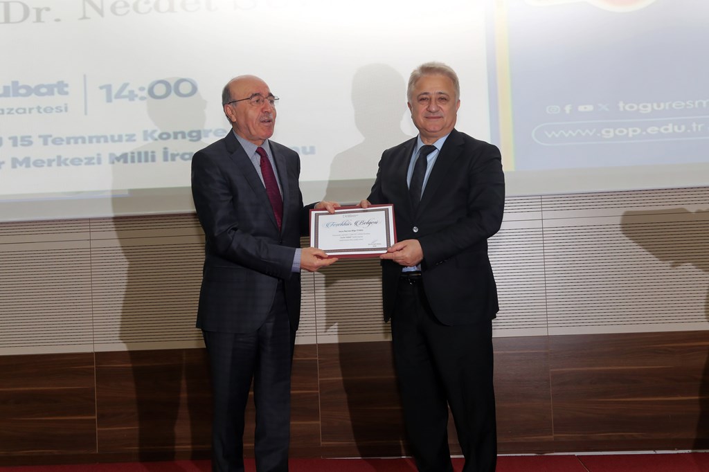 Program sonunda Sanatçı Bayram Bilge Tokal ve Dr. Necdet Subaşı’na Rektör Yardımcılarımız tarafından hediye ve teşekkür belgesi takdim edildi.