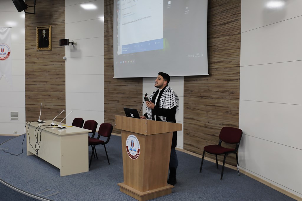 Program, Kur’an-ı Kerim tilaveti ve sinevizyon gösterimi ile başladı. Ardından, İslami İlimler Fakültesi Öğretim Üyesi Doç. Dr. Hakan Temir tarafından “Seyyah ve Tarihçilerin Anlatılarında Gazze” konulu konferans verildi.