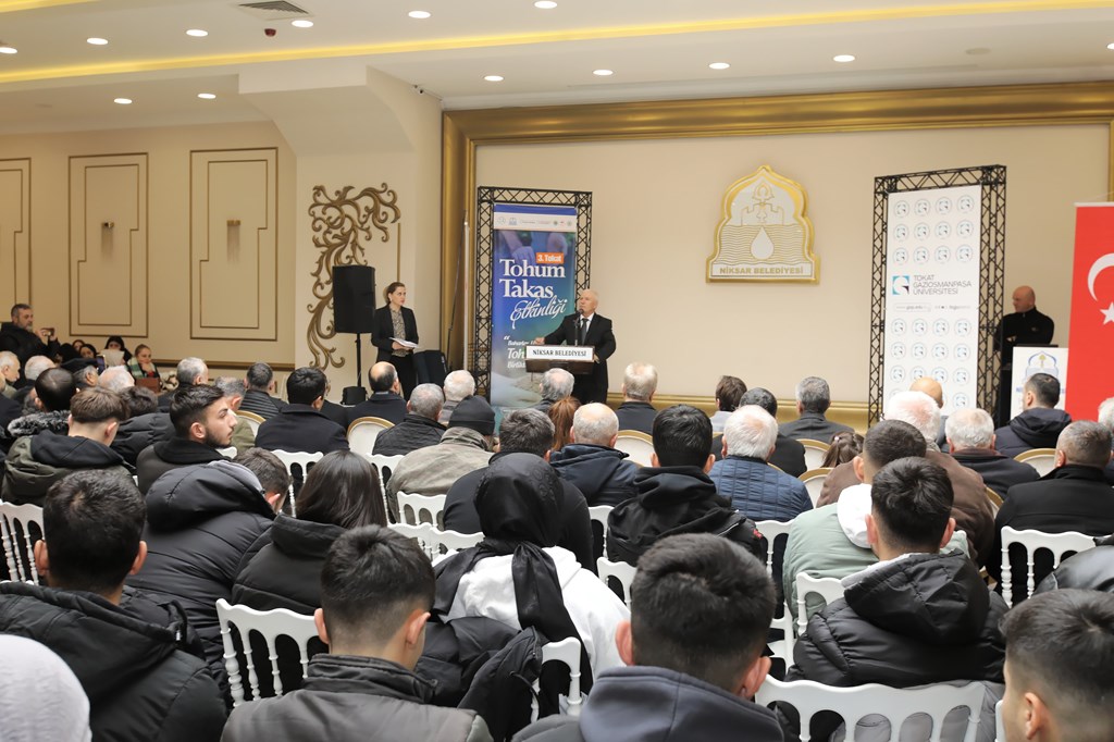 Üniversitemiz, Niksar Belediyesi, Niksar İlçe Tarım ve Orman Müdürlüğü ve Niksar Ziraat Odası iş birliği ile Üniversitemiz Ziraat Fakültesi tarafından düzenlenen 3. Tohum Takas Etkinliği Niksar’da gerçekleştirildi. Yapılan etkinliğe Rektör Yardımcımız Prof. Dr. Mücahit Eğri, Ziraat Fakültesi Dekanı Prof. Dr. Rüstem Cangi, Niksar Belediye Başkan Yardımcısı Mustafa Koyuncu, çiftçiler, akademisyenler ve öğrenciler katıldı.