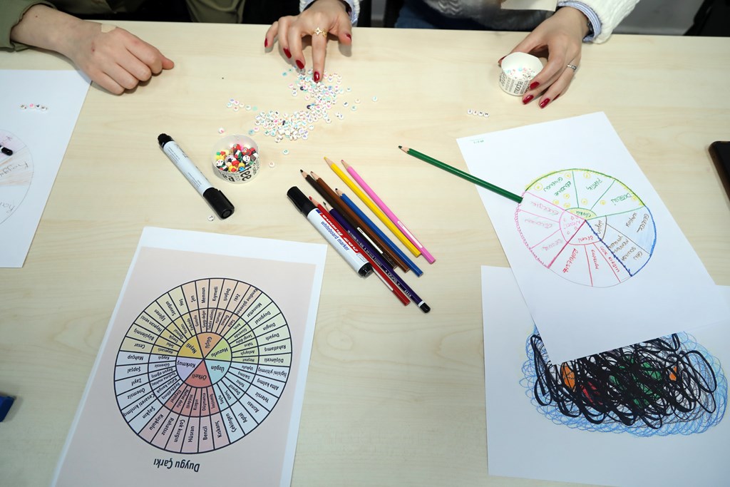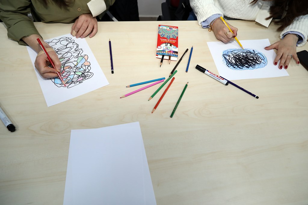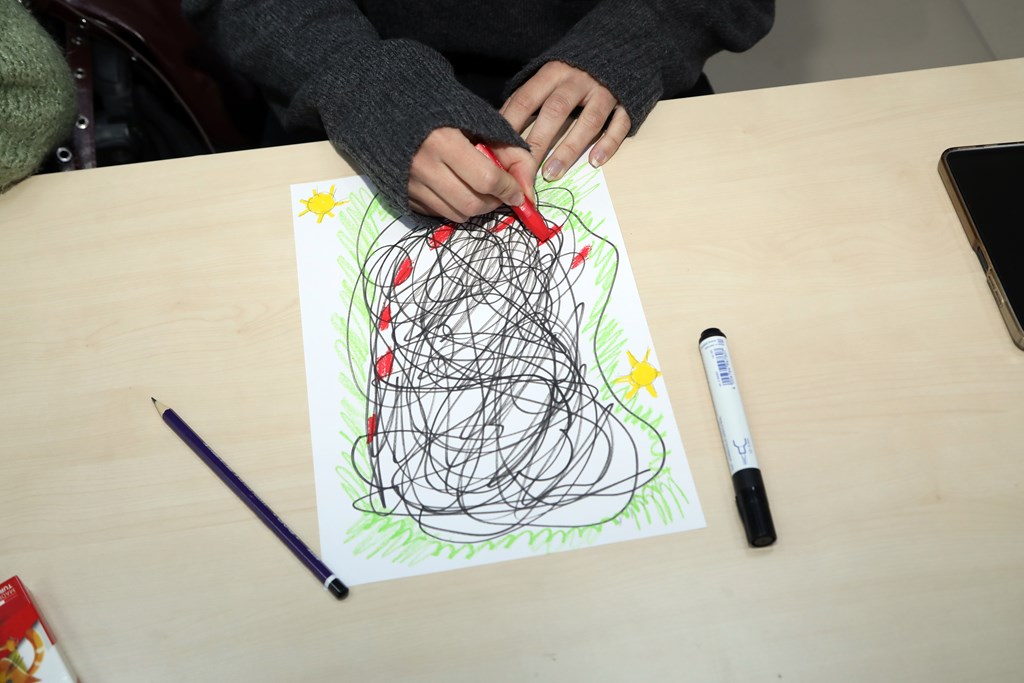 Sanat terapisi tekniklerinin kullanıldığı etkinlikte, katılımcılar duygularını yaratıcı yollarla ifade etme fırsatı buldu. Öğrencilerin yoğun ilgi gösterdiği atölye, duygu yönetimi konusunda farkındalık kazandırırken, aynı zamanda keyifli ve destekleyici bir ortam sundu.