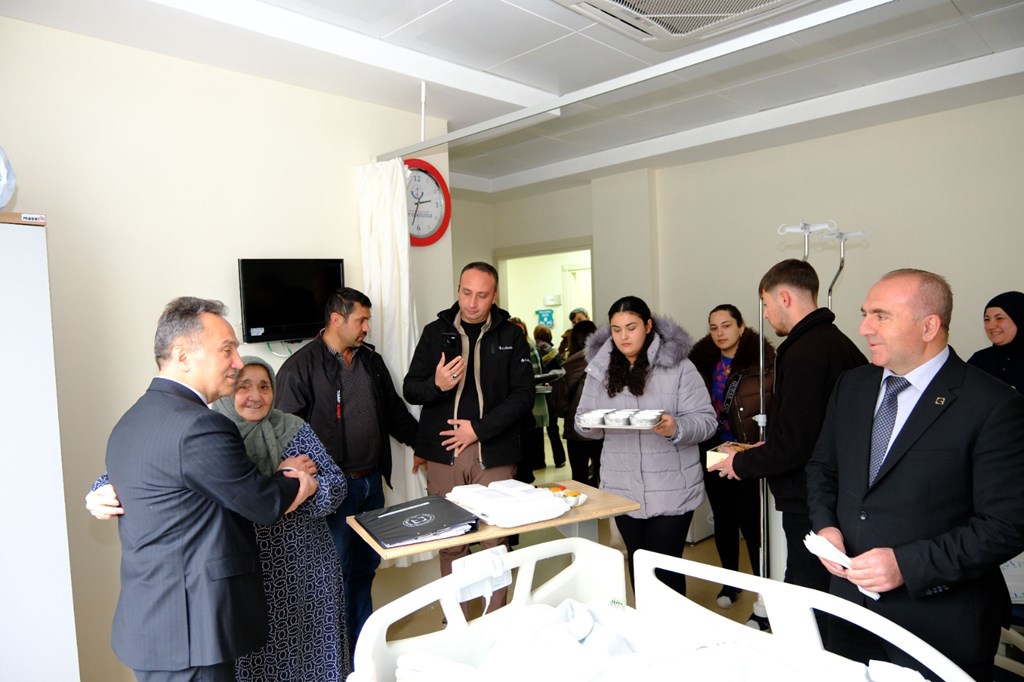 Üniversitemiz Rektörü Prof. Dr. Fatih Yılmaz ve Gönüllülük Dersi sorumlusu Prof. Dr. Yusuf Temür, Hastane Yönetim Kurulu toplantısının ardından Palyatif Bakım Uygulama ve Araştırma Merkezi’nde tedavi görmekte olan hasta ve hasta yakınlarını ziyaret etti. Ziyaret sırasında hastalara çeşitli ikramlarda bulunulurken, hasta ve yakınlarının moral ve motivasyonlarının artırılması amaçlandı.