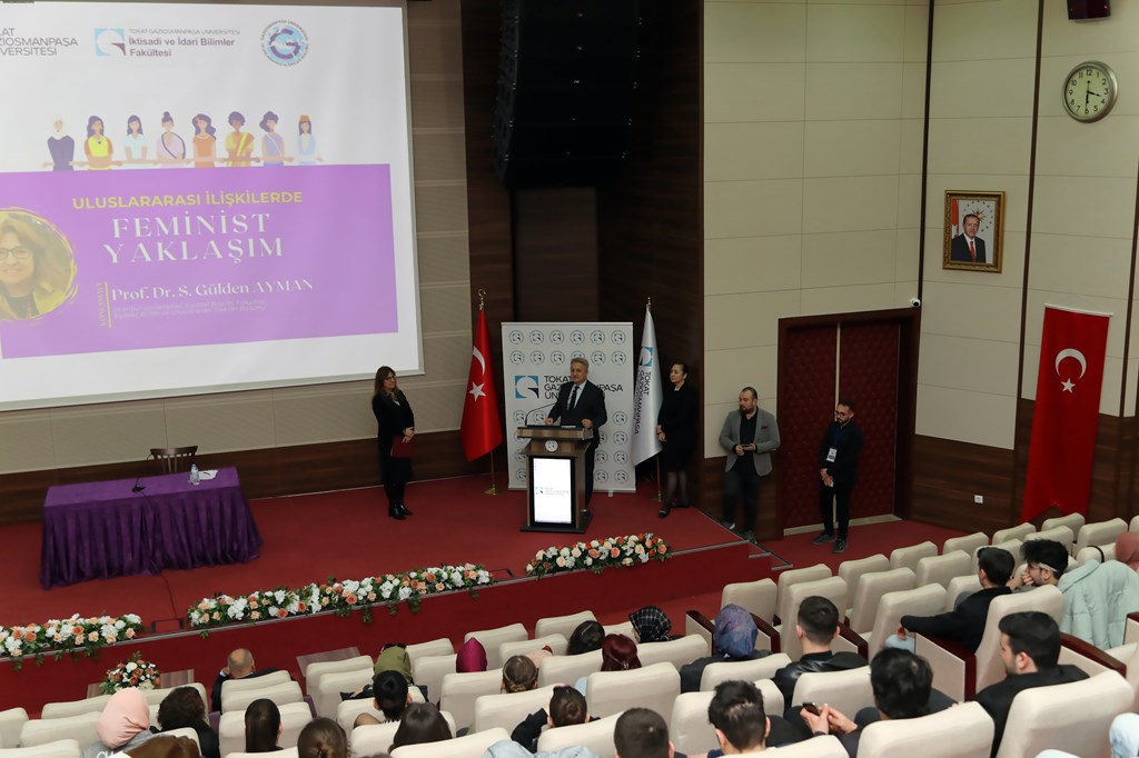 İktisadi ve İdari Bilimler Fakültesi tarafından düzenlenen “Uluslararası İlişkilerde Feminist Yaklaşım” söyleşisi, 15 Temmuz Kongre ve Kültür Merkezi Milli İrade Salonu’nda yapıldı. Söyleşiye Rektör Yardımcımız Prof. Dr. Mücahit Eğri, Genel Sekreterimiz Prof. Dr. Muhittin Demiray, akademik ve idari personelimiz ile öğrenciler katılım gösterdi. İstanbul Üniversitesi Öğretim Üyesi Prof. Dr. S. Gülden Ayman’ın konuşmacı olarak yer aldığı etkinlikte, feminist yaklaşımın uluslararası ilişkilerdeki konumu detaylı bir şekilde ele alındı.