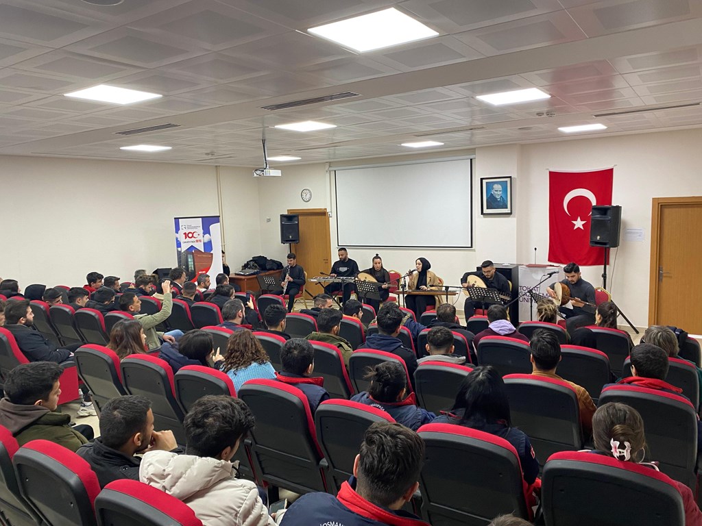 Devlet Konservatuvarı öğrencileri tarafından Türk Sanat Müziği Dinletisi icrâ edildi. Katılımın yoğun olduğu dinletide Lisans 2, 3 ve 4. sınıf öğrencileri; Fatmanur SÜNGER (Ses), Rabia Akcan (Ses- Kanun), Eren ÇEKİÇ (Altyapı), Yusuf Yakup YILMAZ (Ud), Abdulkadir UĞRAŞAN (Tanbur), Burak TOPLAR (Klarnet) görev aldı. Farklı yörelerden seslendirilen eserlere katılımcılar da eşlik etti.