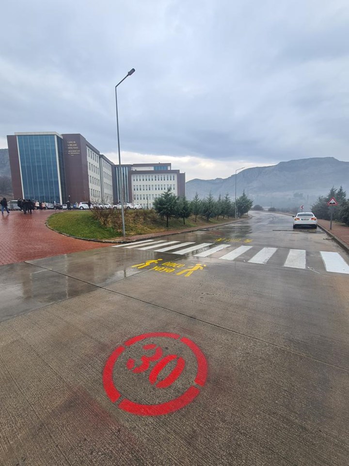 Rektörümüz Prof. Dr. Fatih YILMAZ, Üniversitemizin öğrenci odaklı eğitim öğretim anlayışı içerisinde olduğunu ifade ederek bu yönde adımlar atıldığını söyledi. Üniversitemizde toplam öğrenci sayısının 35 bini geçtiğini, çalışan sayımızın da her geçen gün arttığını belirten Rektörümüz kampüs alanı içerisinde inşa edilen fiziki ortamların yanı sıra kampüs alanının da yayalar için güvenli hale getirildiğini söyledi. Bu kapsamda kampüs alanında yaya geçitlerinin belirlendiğini ve kampüsümüze uyarı işaretlerinin yerleştirildiğini ifade eden Rektörümüz araçlar için hız sınırının ise saatte 30 km olduğunu söyledi.