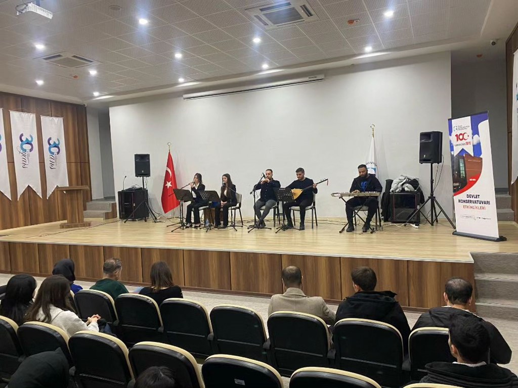 İlçe Kampüsü Dinletileri kapsamında 09.01.2024 tarihinde Pazar Meslek Yüksekokulunda Türk Halk Müziği dinletisi gerçekleştirildi. Katılımın yoğun olduğu dinletide Büşra Erdem ve Ayşe Betül Özdamar solist olarak görev yaptı. Solistlere, Çetin Eren Çekiç (Klavye), Mutlu Demir (Bağlama), Yusuf Açıkgöz (Mey) eşlik etti. Dinleti sonunda öğrencilerimize teşekkür belgelerini Pazar Meslek Yüksekokulu Müdürü Öğr. Gör. Şükriye SAKAR takdim etti.