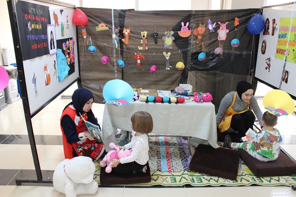 Doç. Dr. Nuran Tuncer, yaptığı konuşmada “Etkileşimli okuma; kitabı konuşturmak, hayal gücü ile biçimlendirmek ve kitabı yeniden üretmektir. Bunun için de elinizde yaşa uygun bir kitap olması yeterlidir. Bugün burada tam 21 çocuk kitabını konuşturmak, hayal gücü ile biçimlendirmek ve çocuklarla birlikte yeniden üretmek için 21 istasyon kuruldu. ‘İki kapak arasına gizlenen’ o kitapları çocuğunu yaşamına bağlayın. Bu bağ ve etkileşim öyle güçlü olsun ki çocuklar bir gün yalnız kalıp kitap okuduğunda kitapla konuşmayı, kitabı üretmeyi, biçimlendirmeyi ve kitapla ilişki kurabilmeyi öğrensinler” diyerek yapılan etkinliklerin amacını açıkladı. Etkinlik Eğitim Fakültesi giriş katında 2 gün boyunca sürdü. Etkinliği düzenleyen öğretmen adayları çocukları oyunlarla, etkinliklerle ve neşe içinde karşılayarak onlarla ilgilendi.