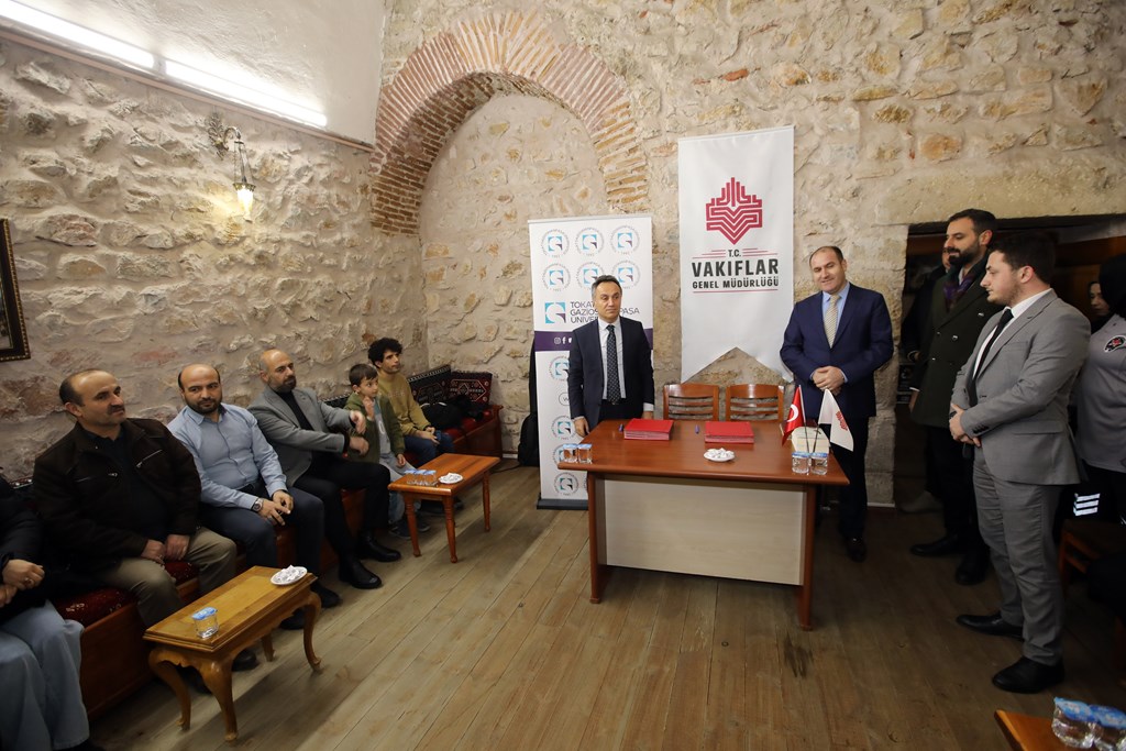 Üniversitemiz ve Vakıflar Bölge Müdürlüğü arasında işbirliği protokolü imzalandı. Tarihi Halef Sultan Zaviyesi’nde gerçekleştirilen imza törenine Rektörümüz Prof. Dr. Fatih YILMAZ, Vakıflar Bölge Müdürü Sebahattin ERDOĞAN, akademisyenler ve öğrenciler katıldı. İmza töreni öncesinde Zaviye’yi gezen Rektör YILMAZ öğrencilerle sohbet etti.